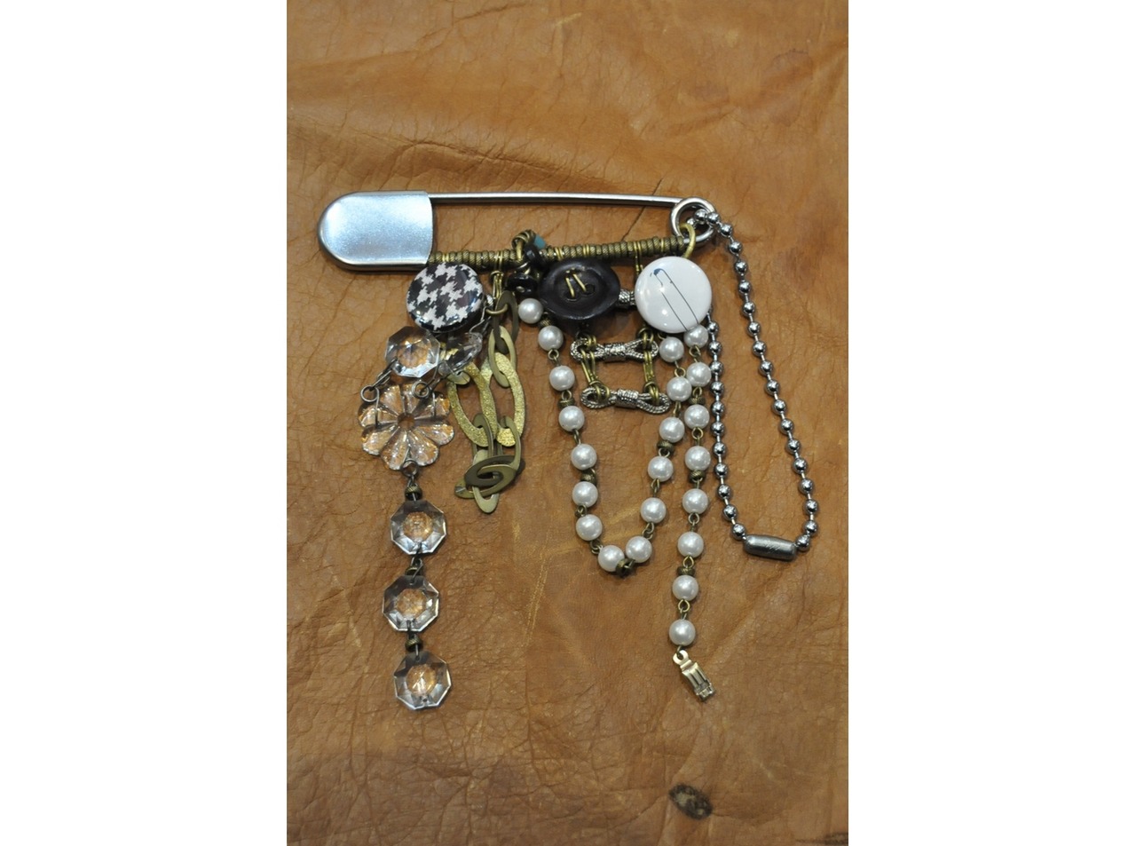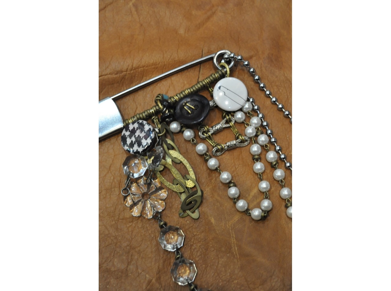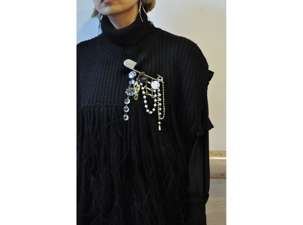 アンティークのシャンデリアのパーツ、オリジナルファブリックのボタン、真鍮パーツなどを贅沢に使用した存在感のあるシリーズです。