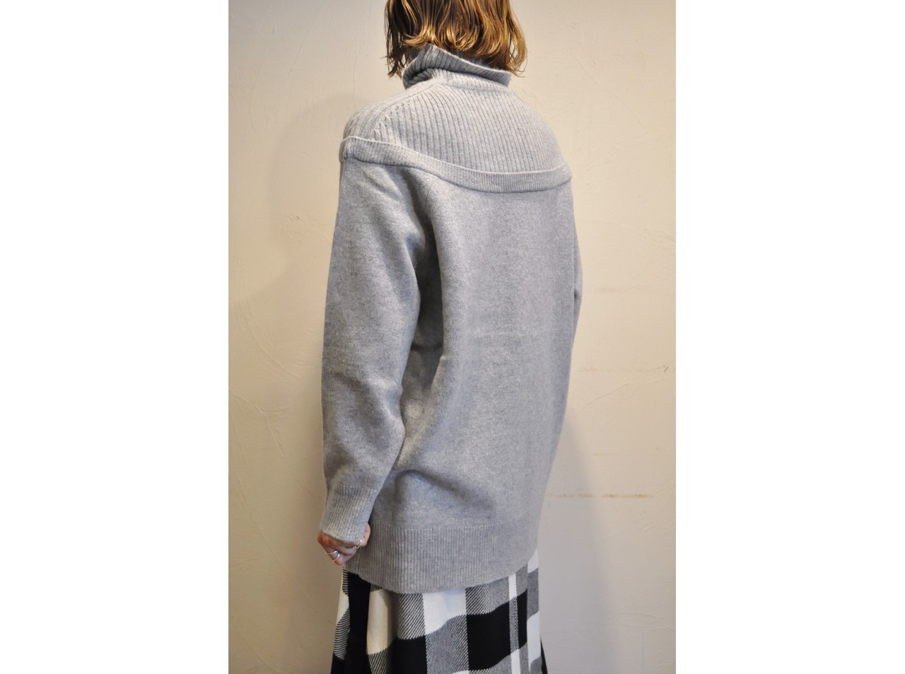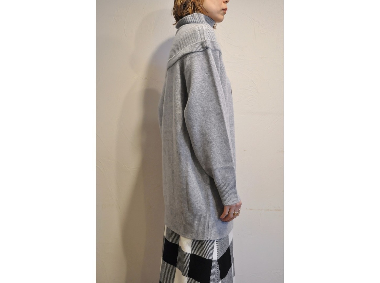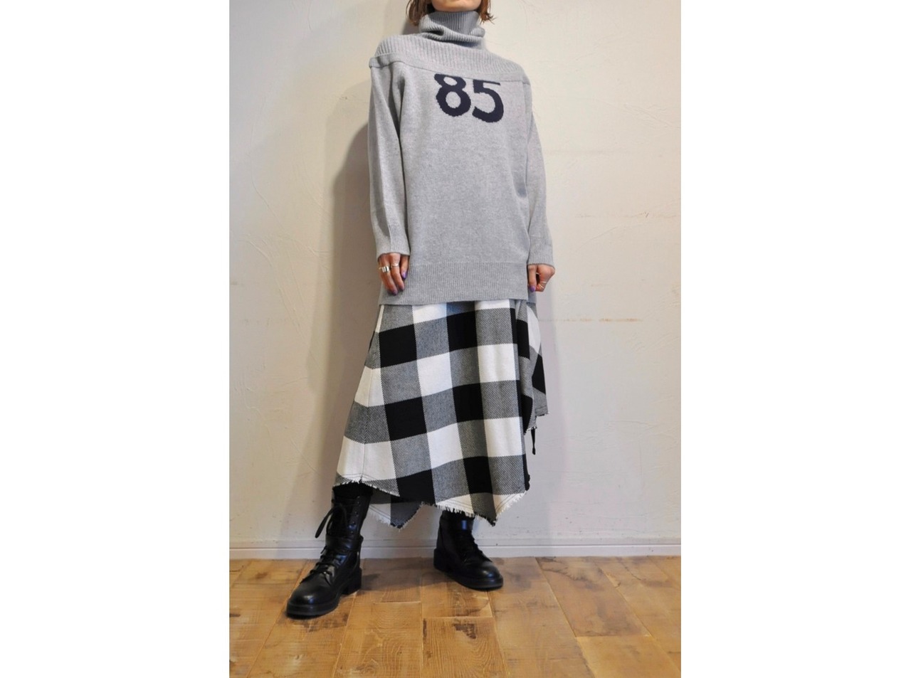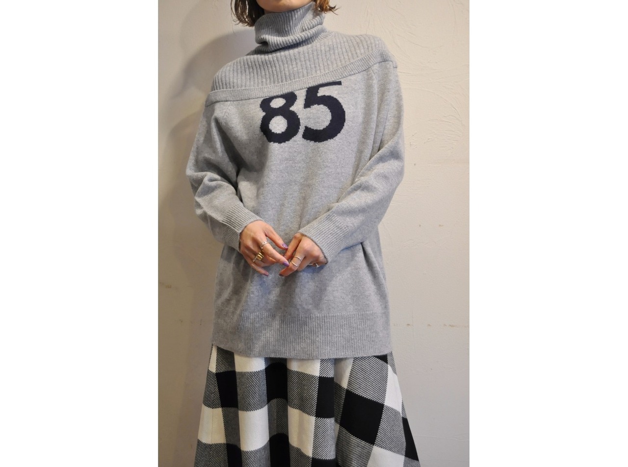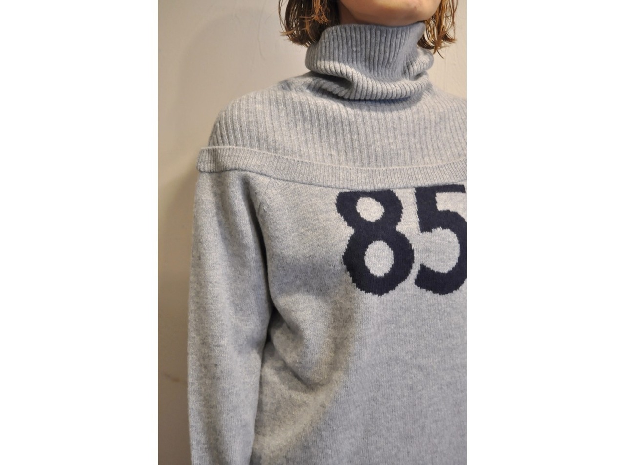 上部リブ編みと数字ロゴの切り替えが重ね着に風になったデザインです。