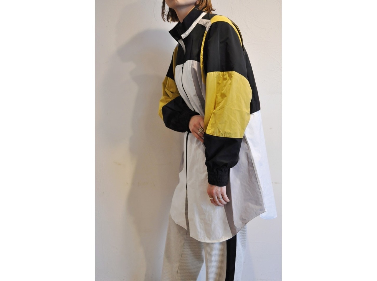 ●レトロなウインドブレーカーをモチーフにデザインされたロングシャツです。