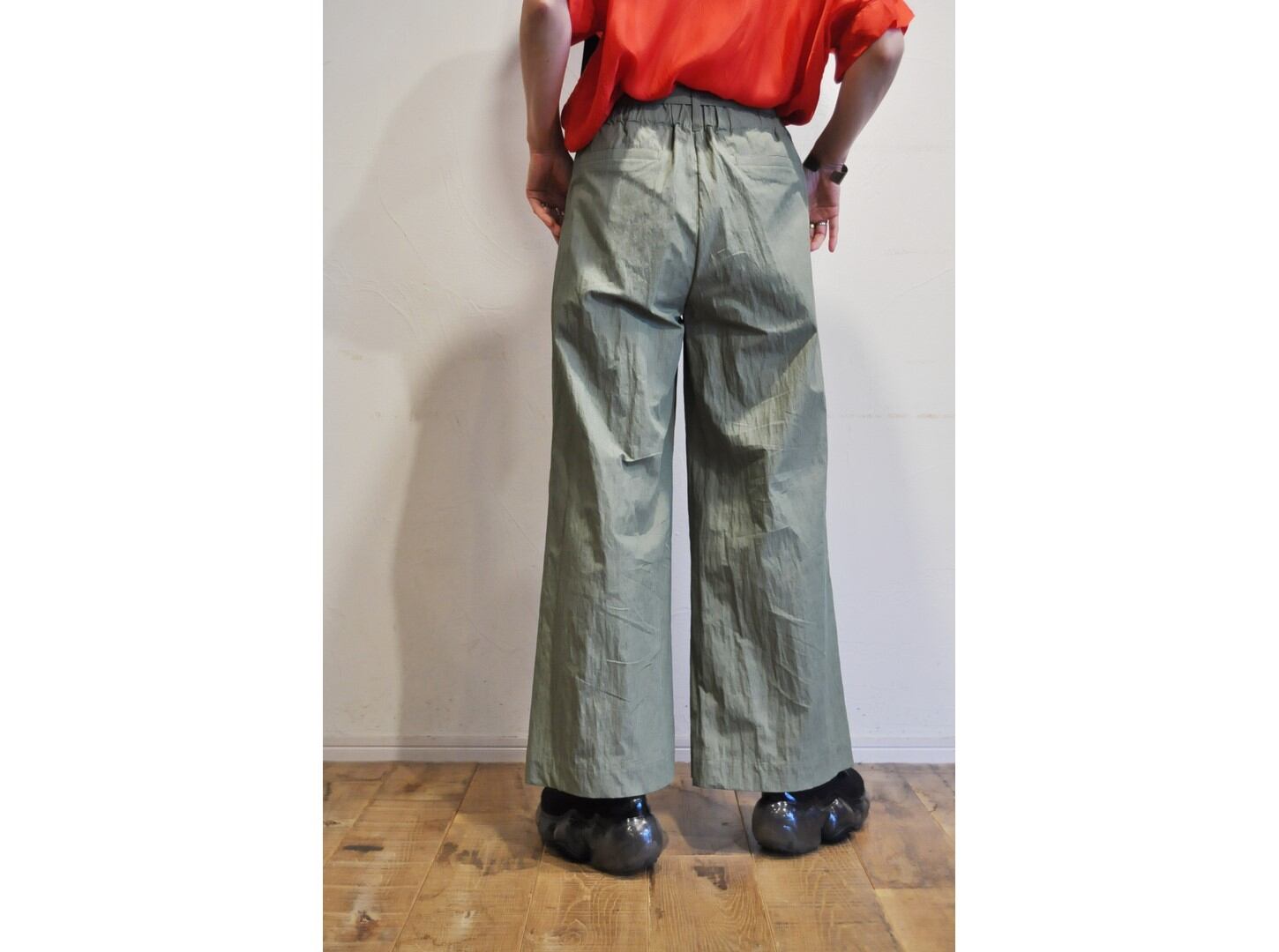 ●若干のシワとムラ感がある、雰囲気のある生地を使用したワイドパンツ。