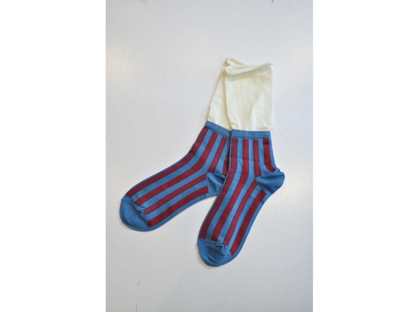 ストライプソックスに透け感のある異素材を組み合わせたデザインソックス。