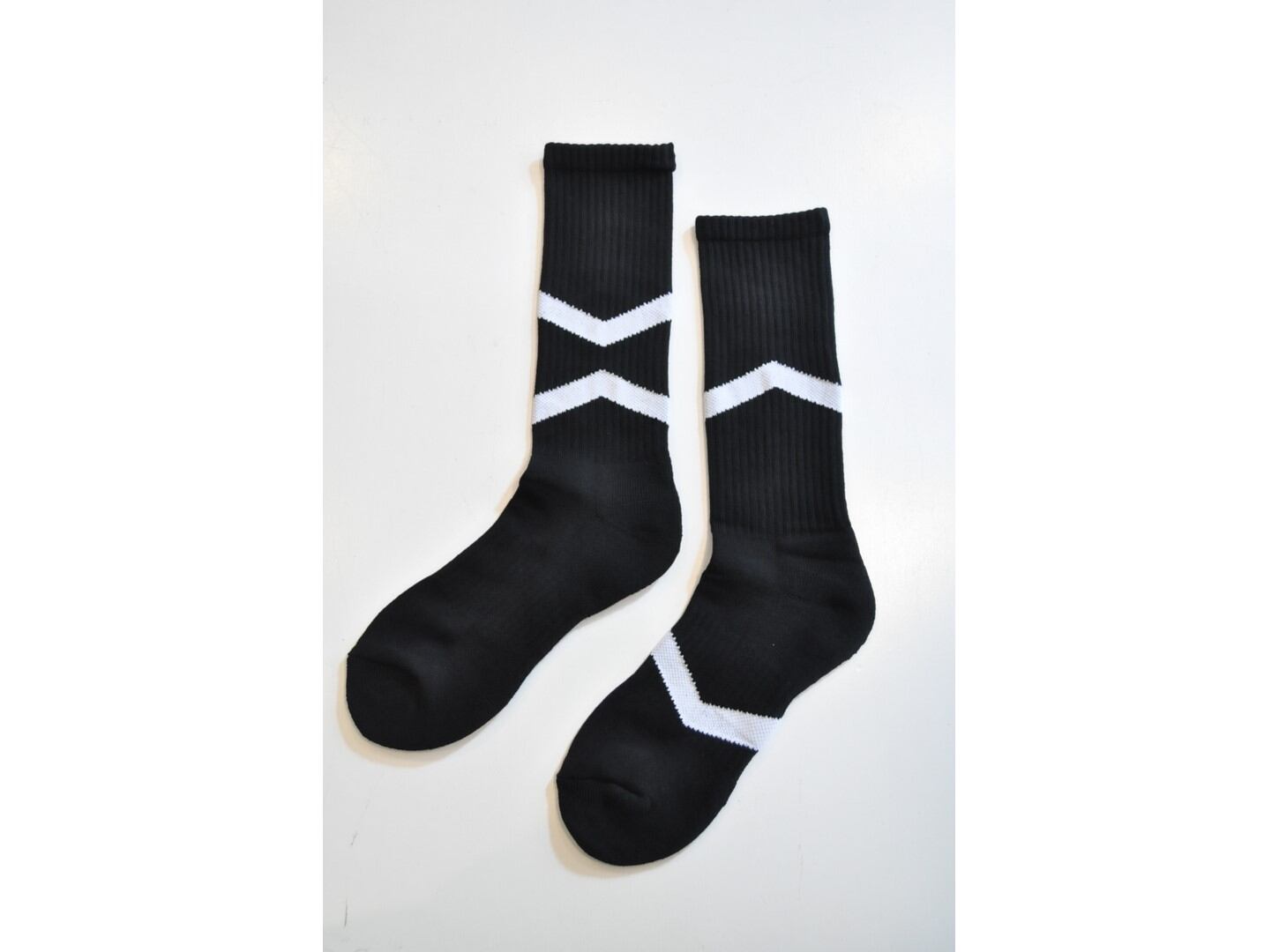 クッション性抜群のスポーツソックスにアシンメトリーのラインをデザイン。
