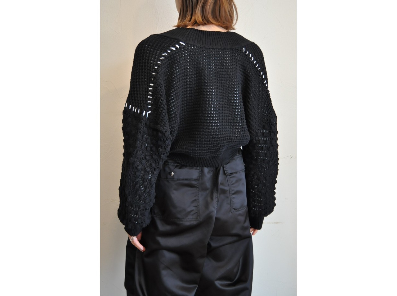 ●かぎ針編みの袖が目を惹くボレロカーディガン。
