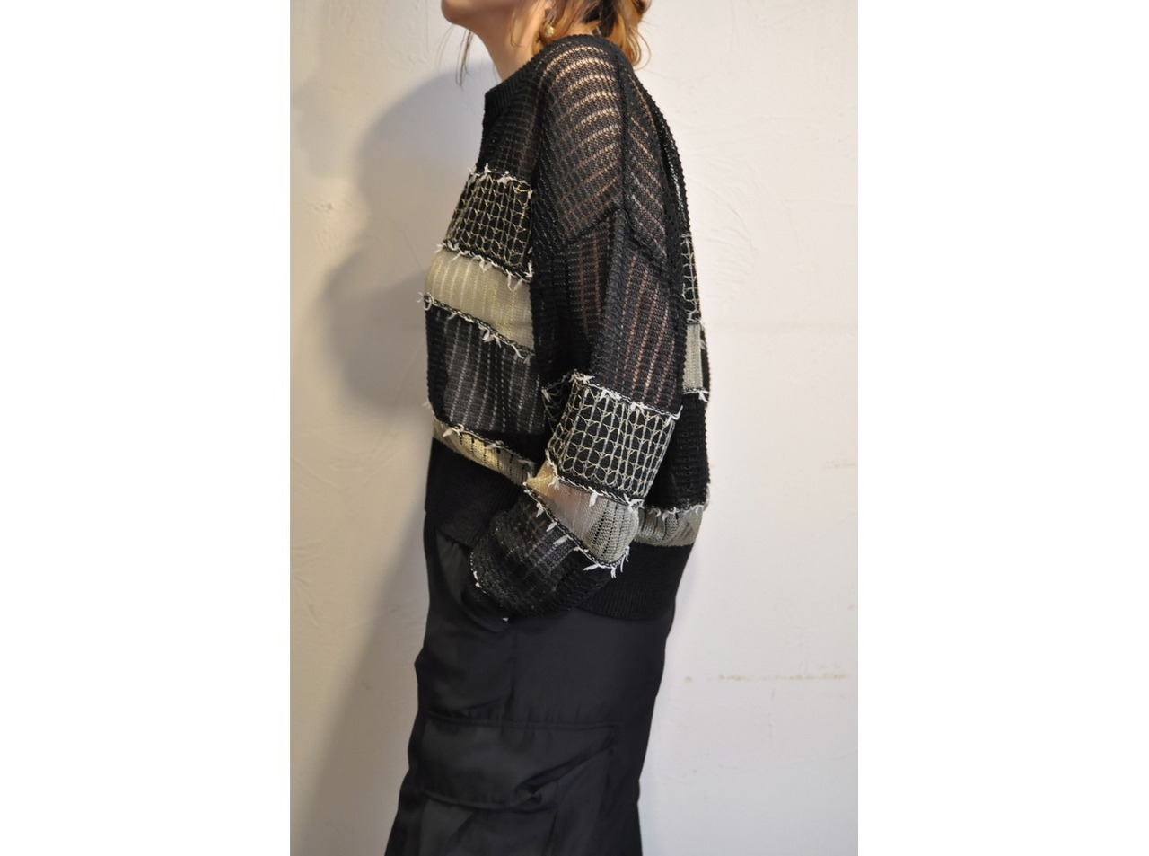 パネルごとに異なる編み地が インナーの透け具合に強弱をつけ、上品なシアー感があります。