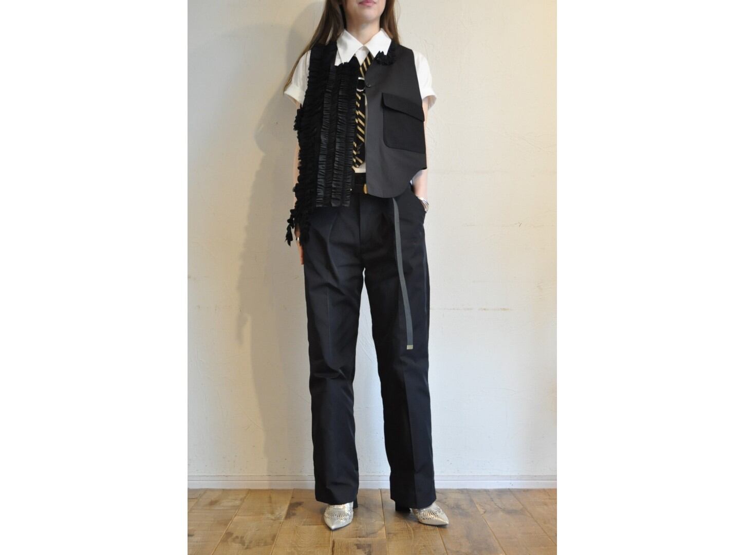 ●アシンメトリーのフリルとポケットが特徴的なベスト。