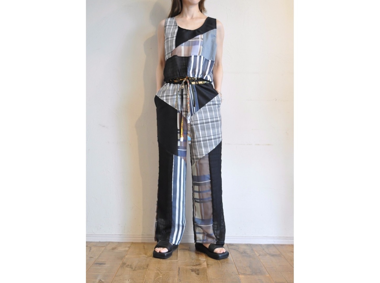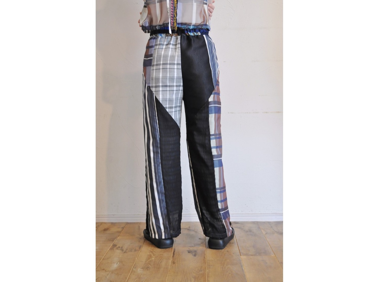 ●定番柄物のパッチワークパンツ。今回は斜めの切り替えパッチワークです。