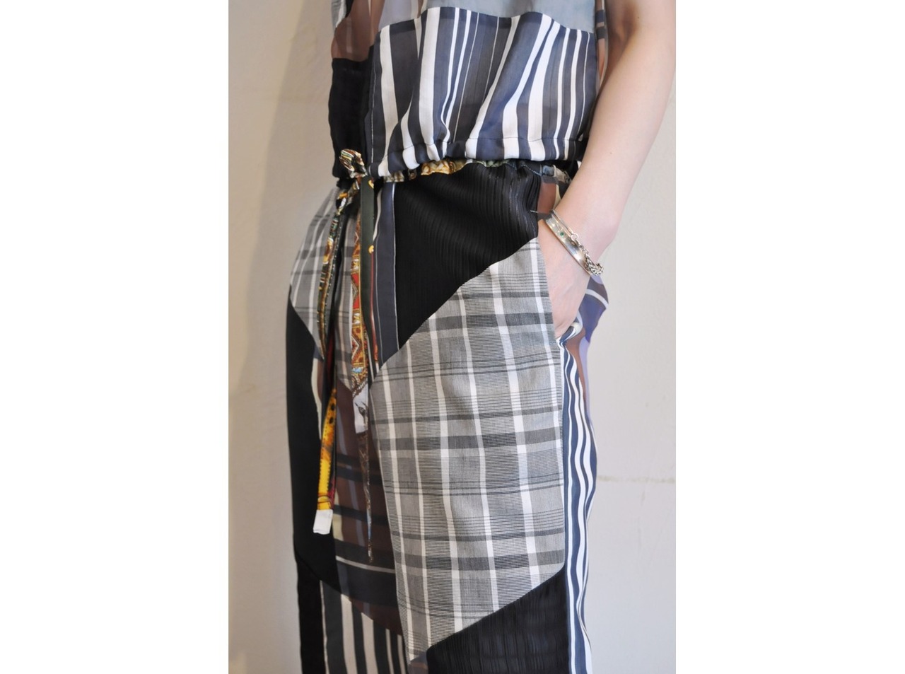 ウエストと紐がビンテージスカーフ使用でアソートになり、本体生地は統一の配置になります。