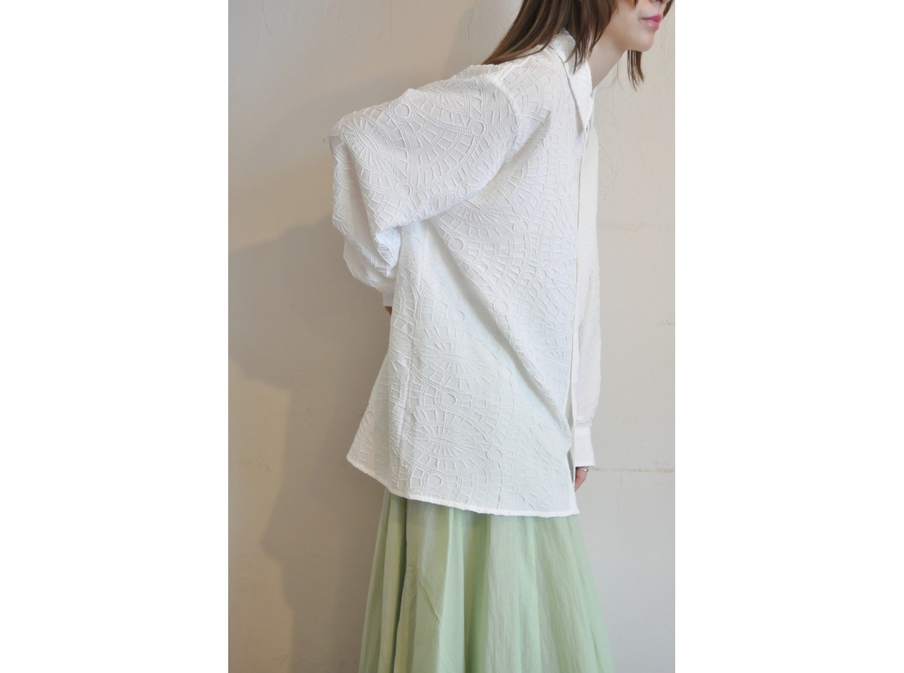 ●装飾的な模様が特徴のオーバーサイズシャツ。