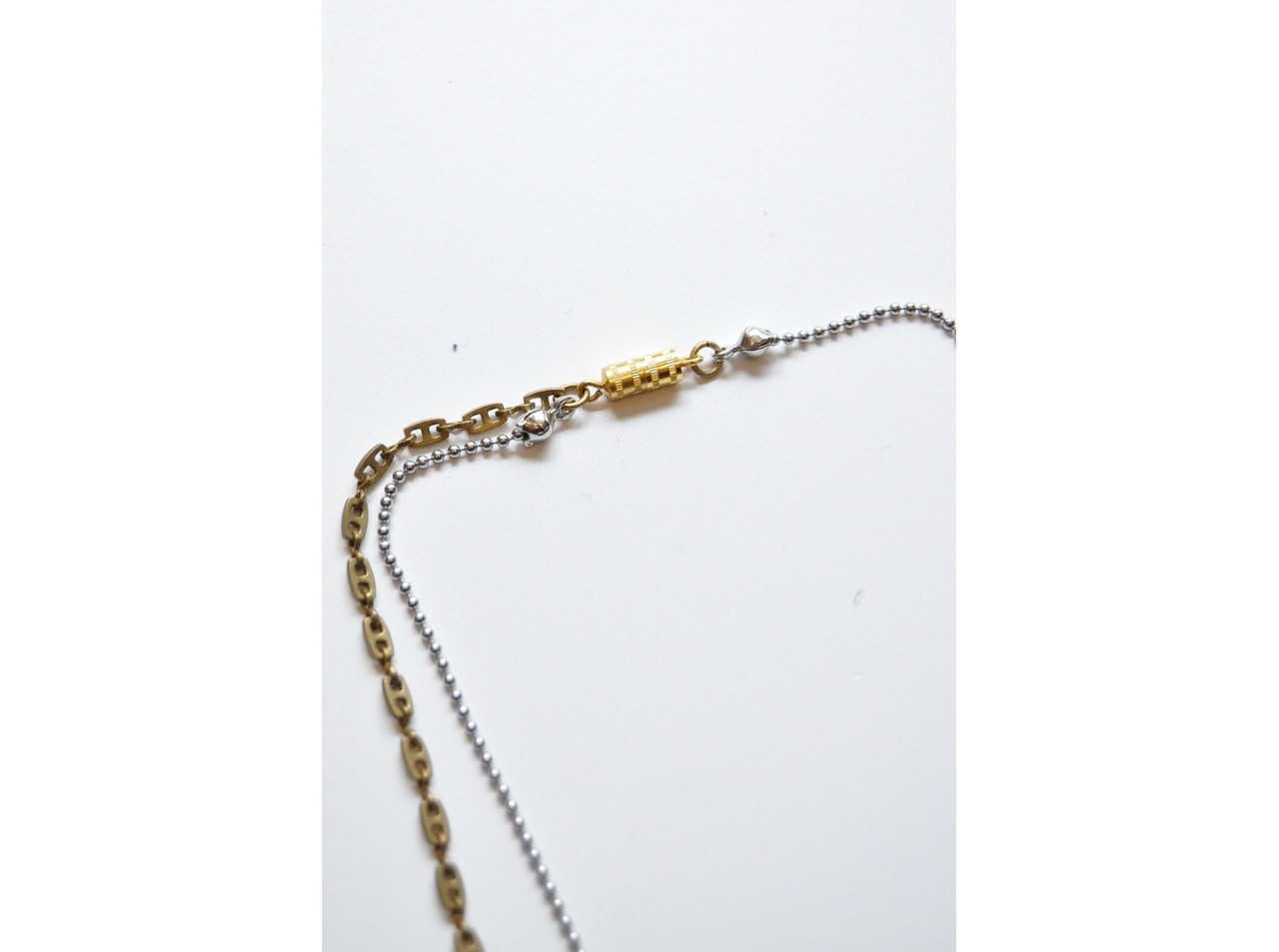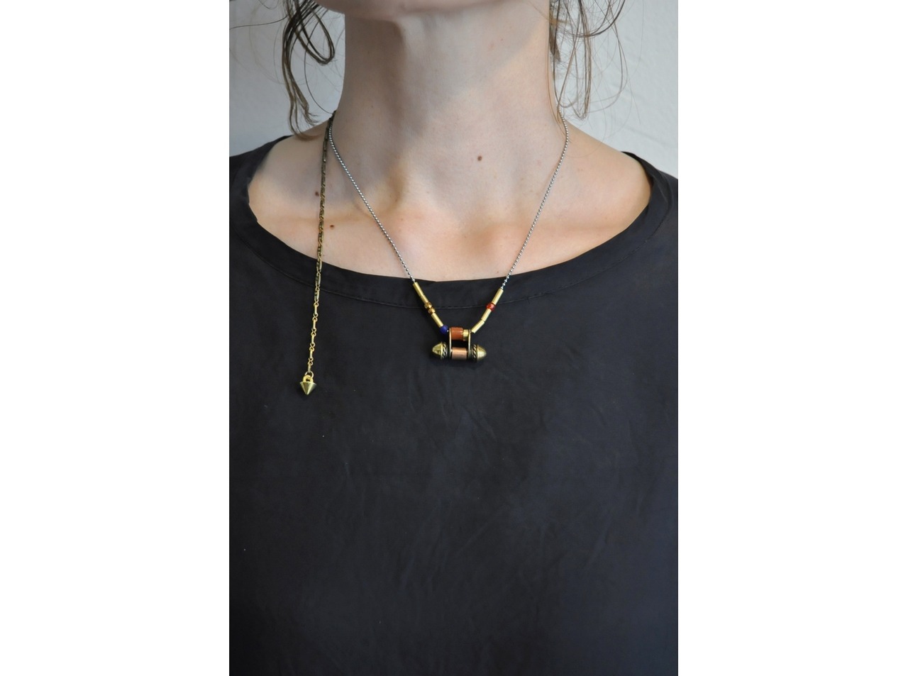 ビース、真鍮など、色々なパーツを使用したデザインです。
