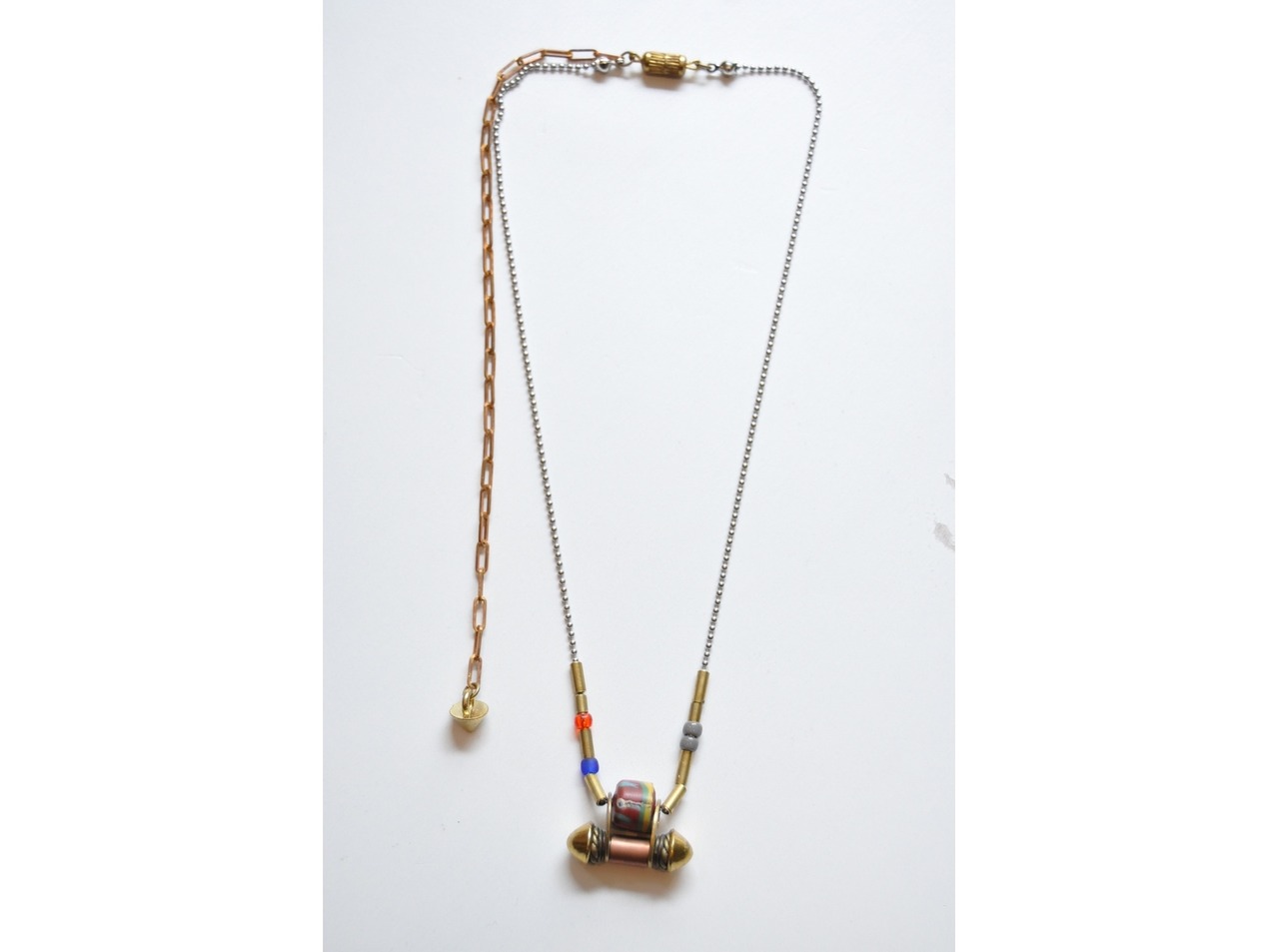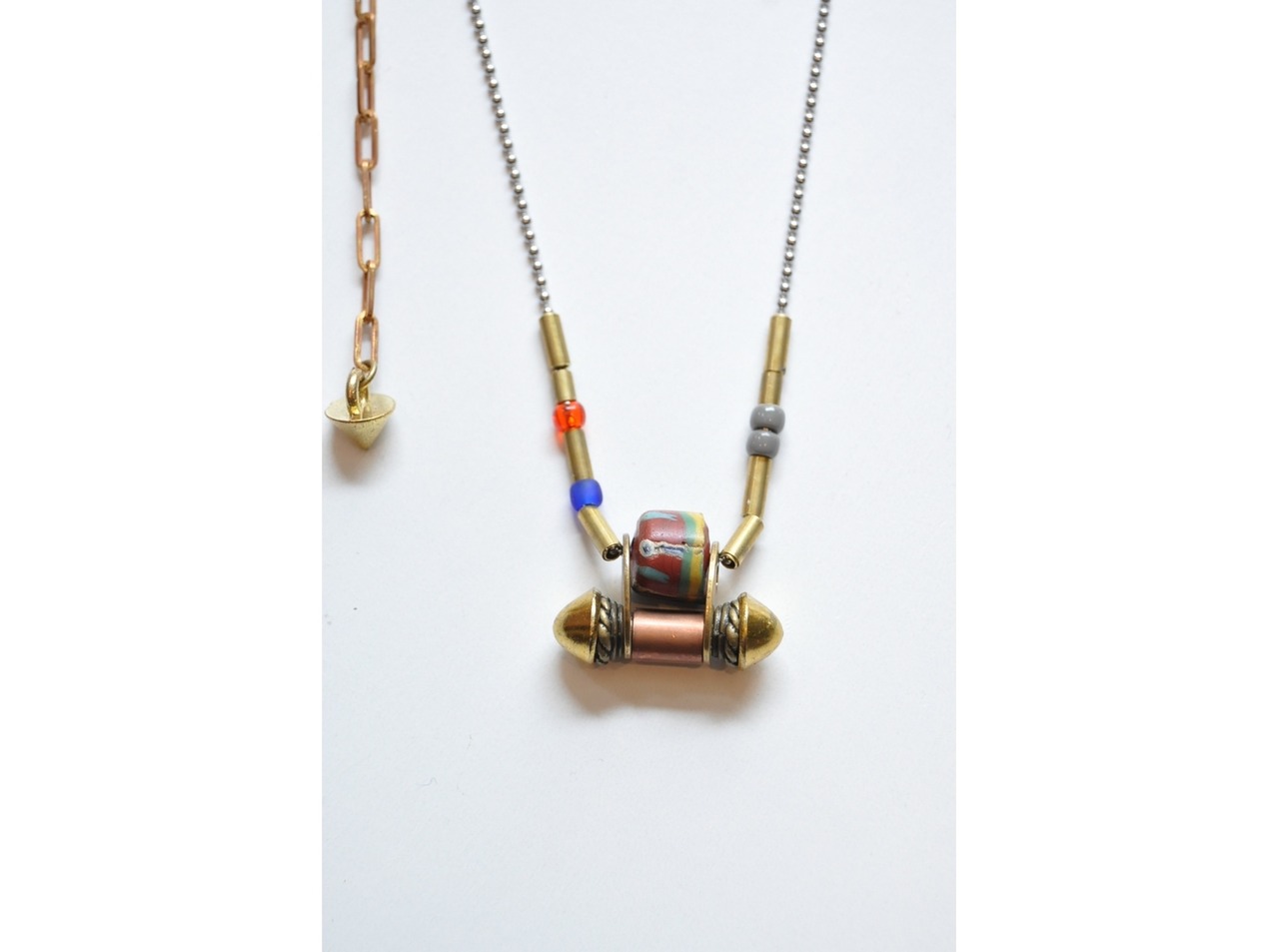 ビース、真鍮など、色々なパーツを使用したデザインです。