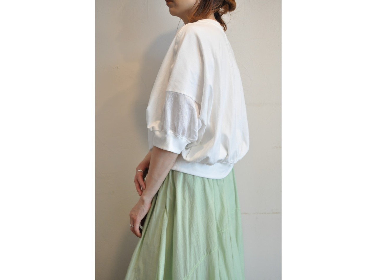 ●前後差のある着丈と、裾に入ったギャザーで丸みのあるシルエットがかわいい1枚。