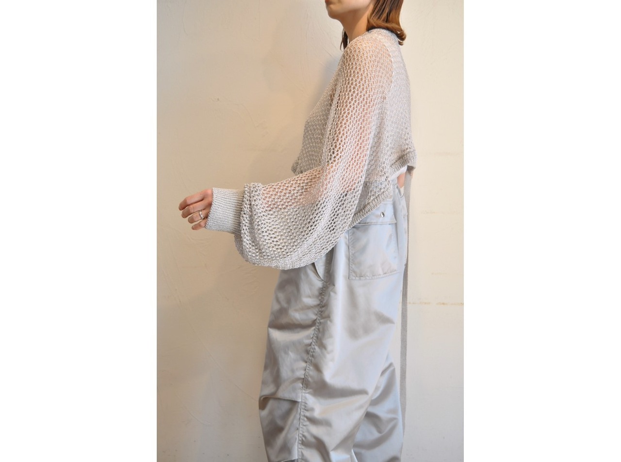 ●和装の帯締めに使われるハリコシのある金属調のマットな光沢糸で編上げたフィッシュネットのラメニット。