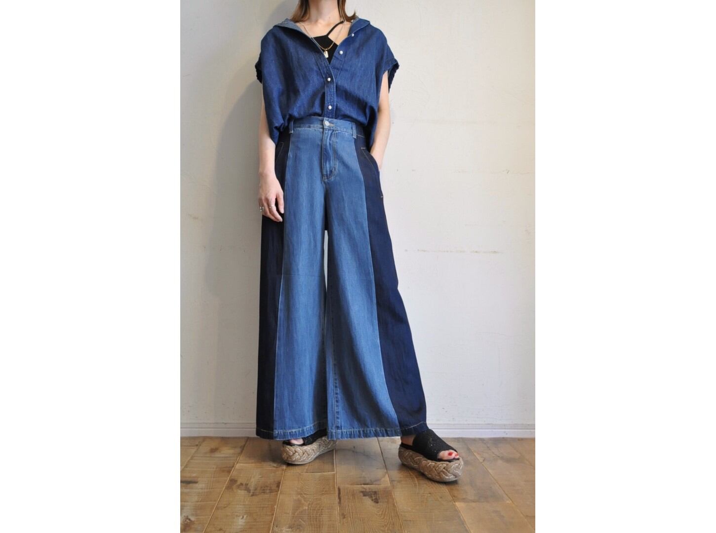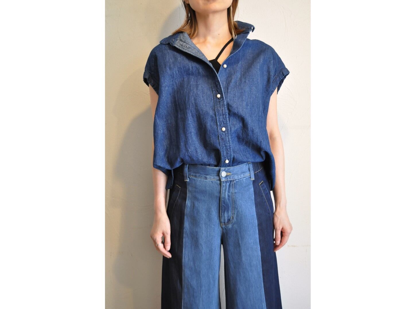 ラフなデニムと上品なパールボタンのMIX感が絶妙なデザインです。