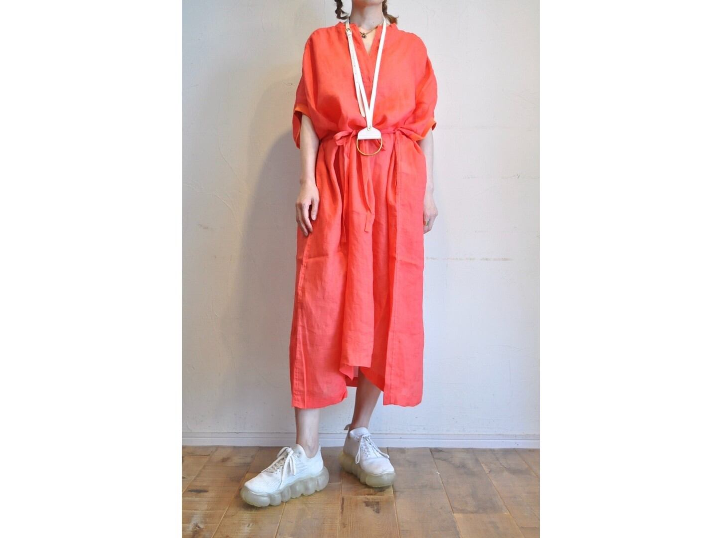 ●涼しげなラミー麻のドルマンワンピース。