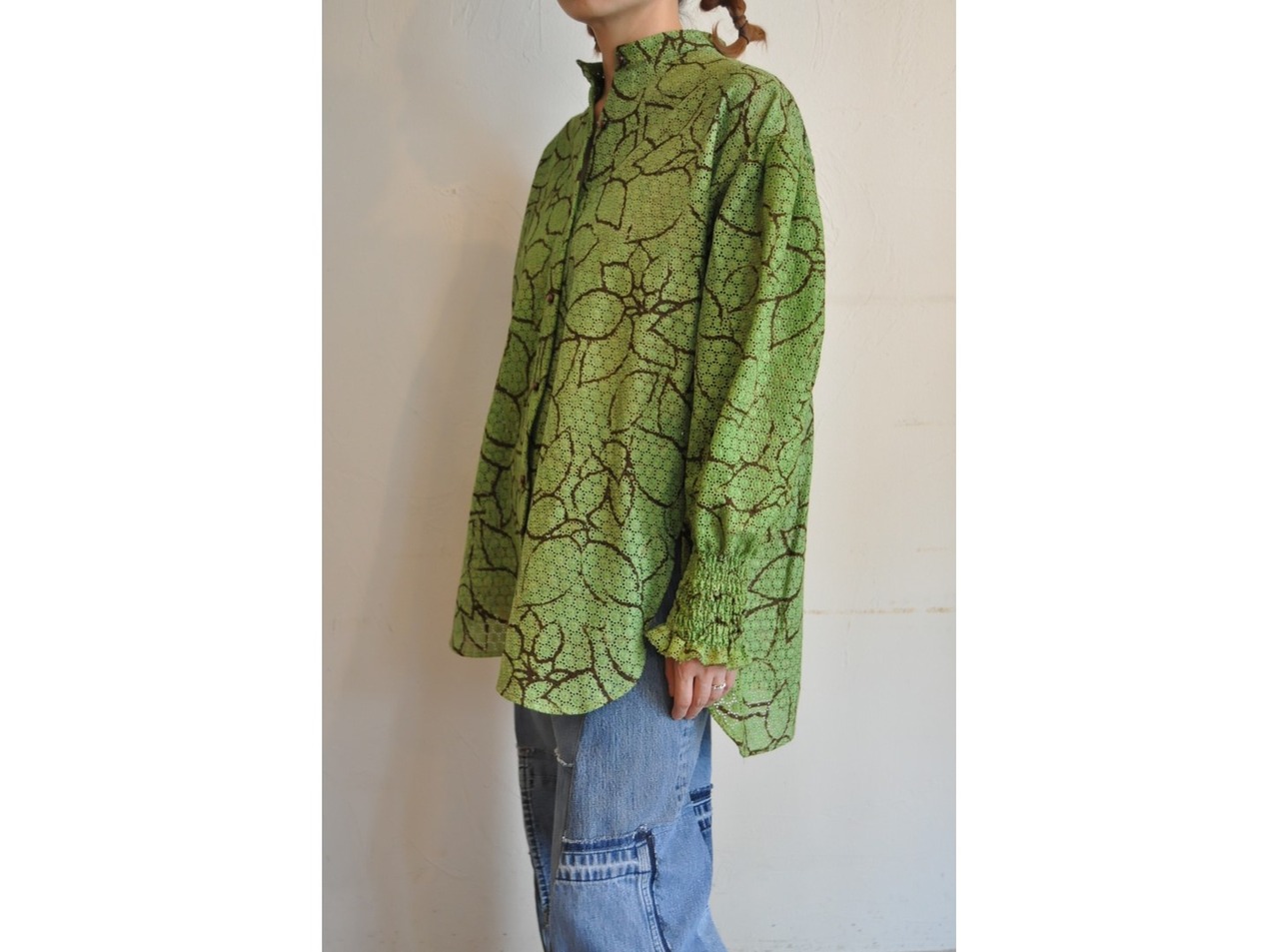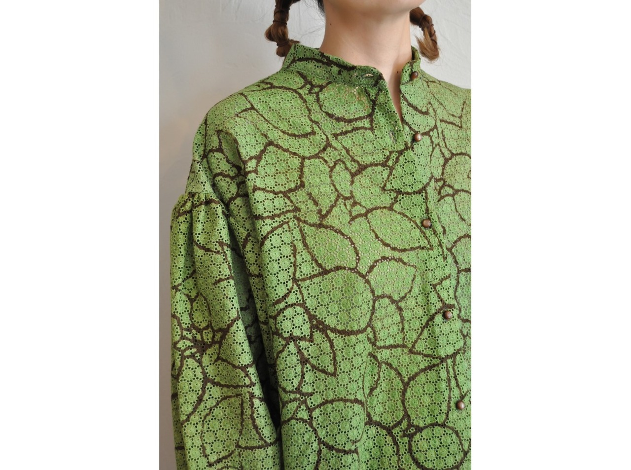 ●レトロなボタニカル柄のレース生地で作られた前開きシャツです。