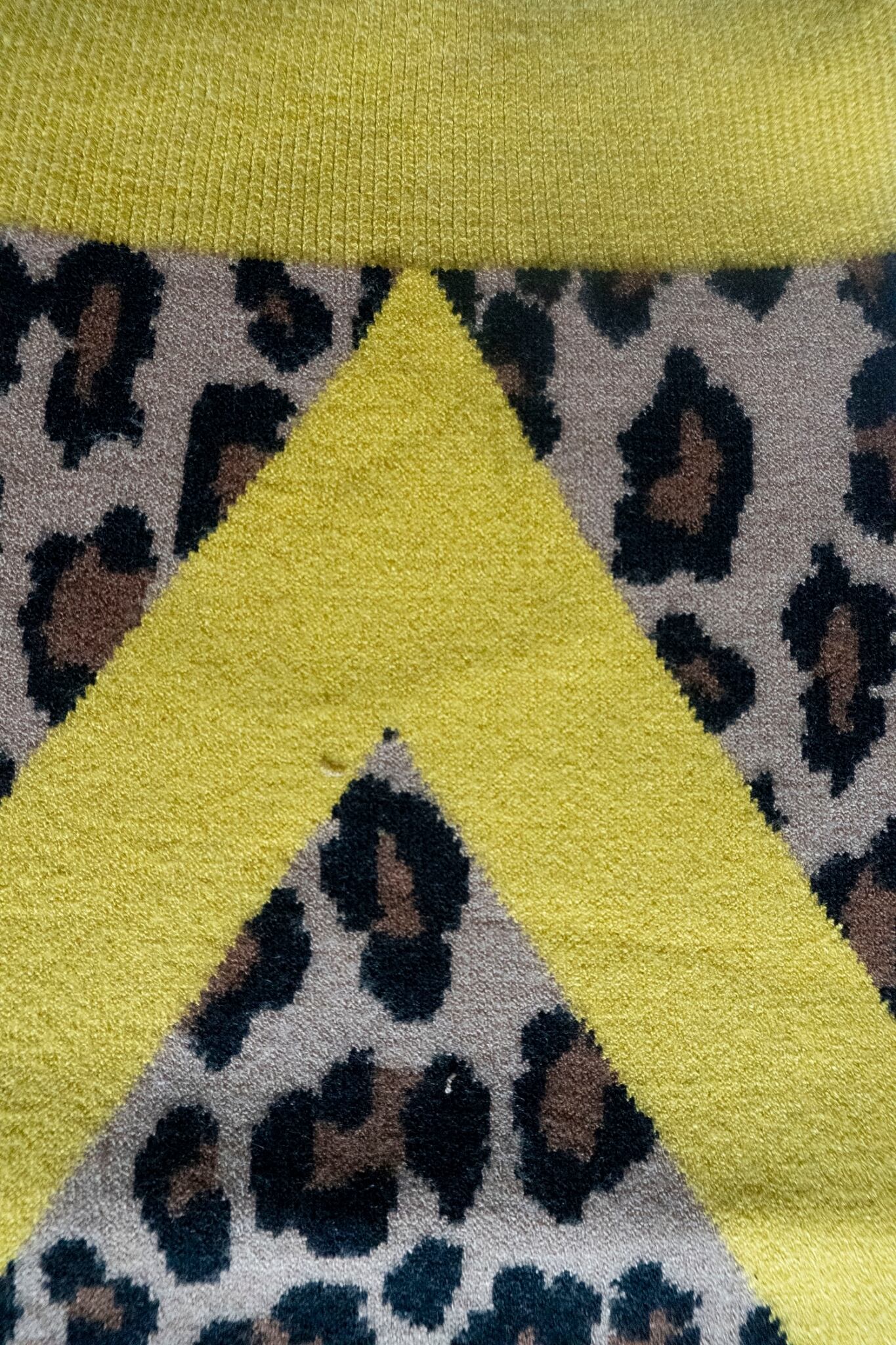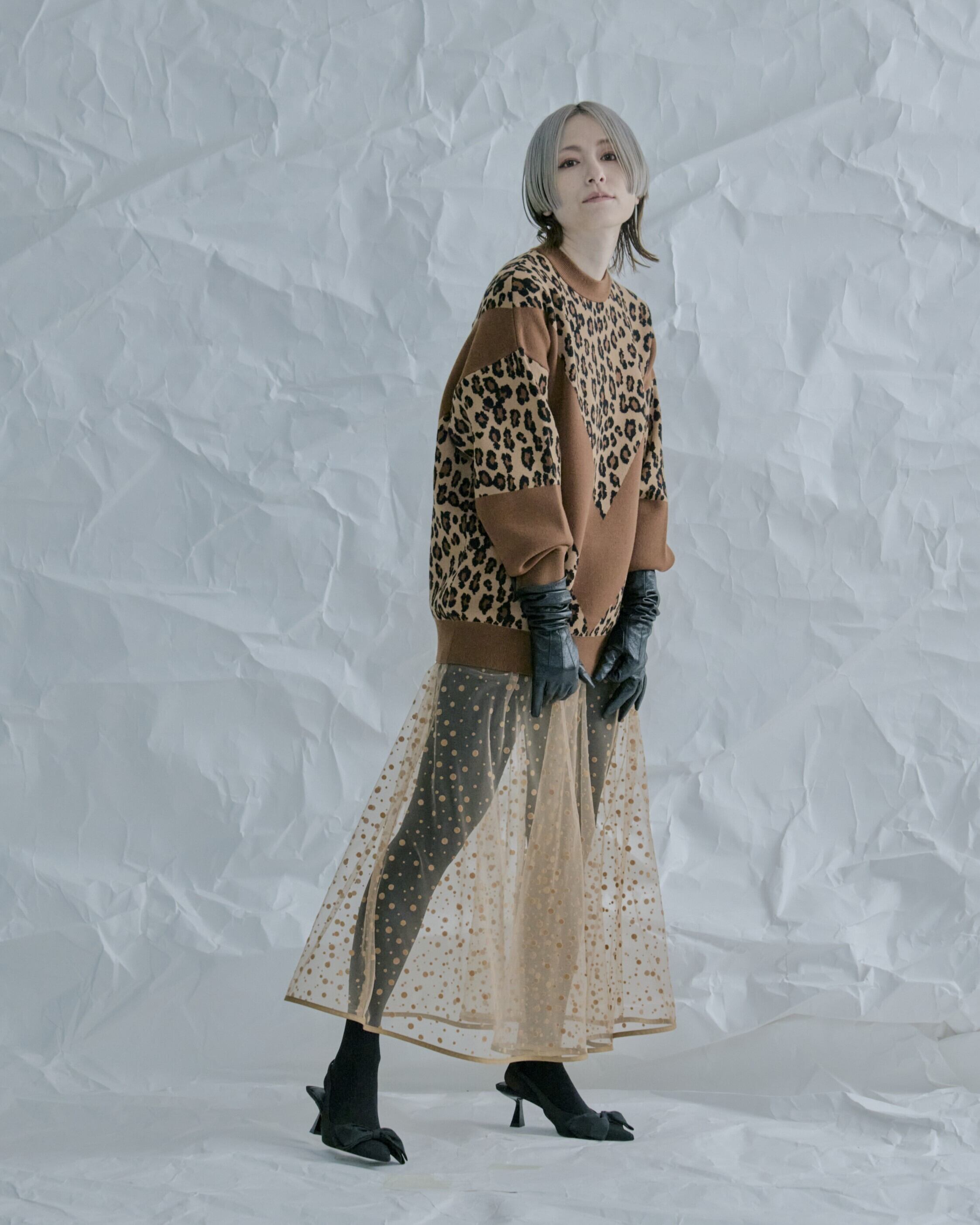 レオパードは定期的に出している大好きな柄です。今回はニットでオリジナルの柄を作りました。トーマスマグパイだけのオリジナルデザインの柄になっています。ニットは柄はどれもオリジナルで、毎回苦心しながらデザインしていますが、レオパードの柄は初めてのチャレンジです。定期的に着なくなる時期がありますが、数年おきにレオパードに対するブームがあるのか、今年の冬にまた着たいなと思いデザインしました。