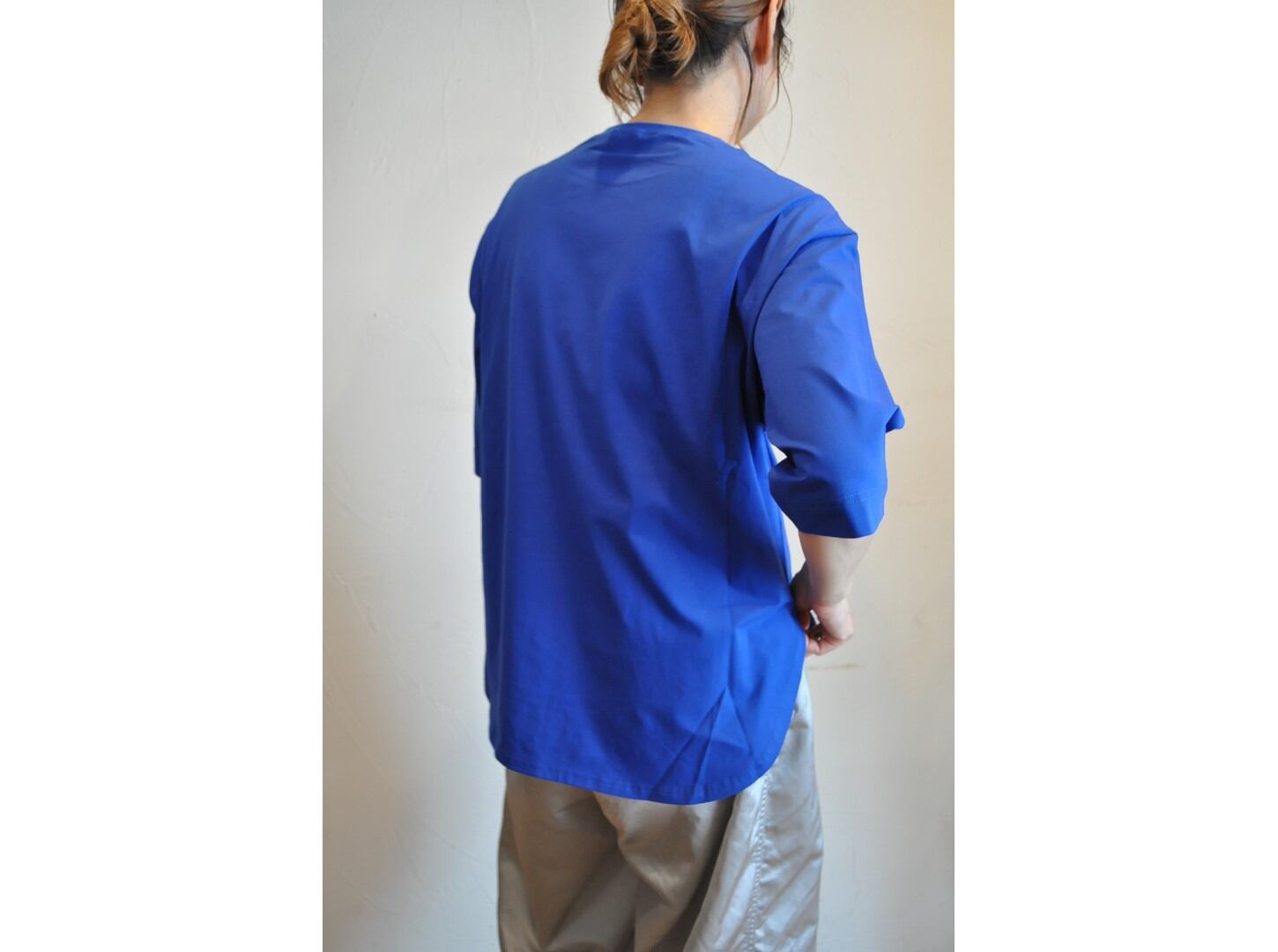 衿あきは小さめ、裾はカーブで前後差を付けたことでボトムに合わせてレイヤードしやすいアイテムです。