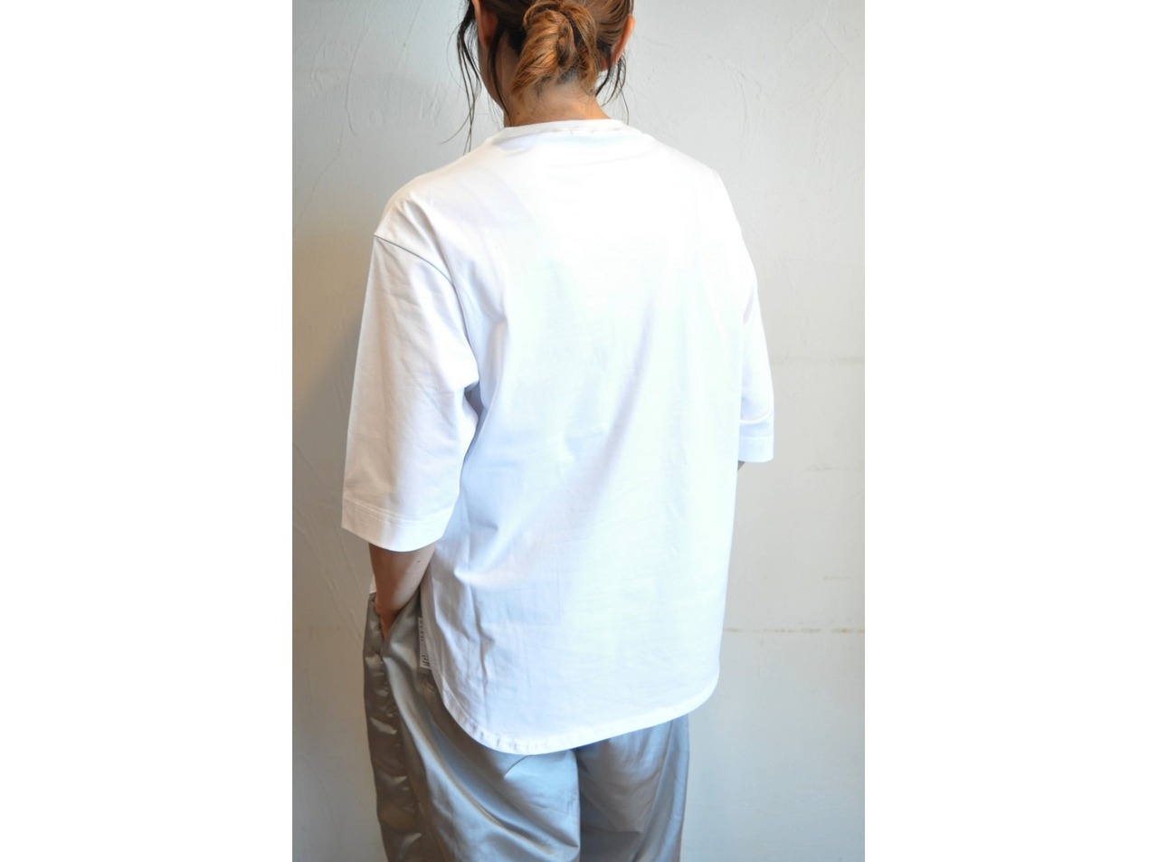 肘の隠れる五分袖シルエットで、サイズ感は程良くゆとりの入った大きさになっています。