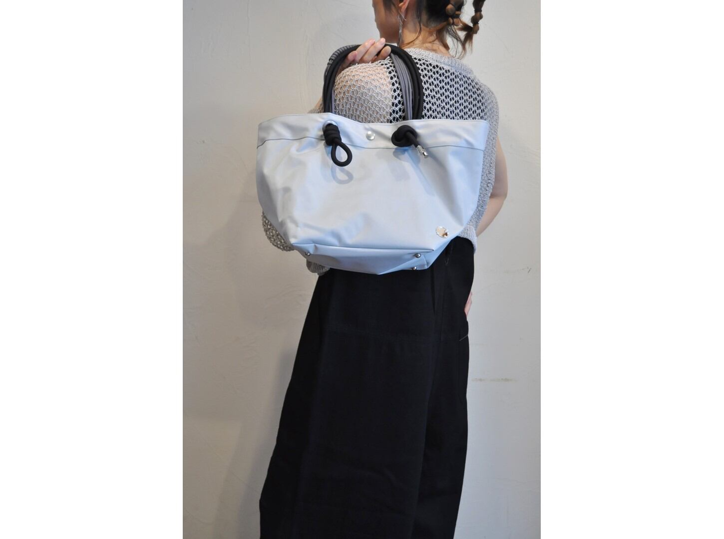 ●耐摩耗性と防水素材で軽い素材を使用した舟底型のトートバッグ。