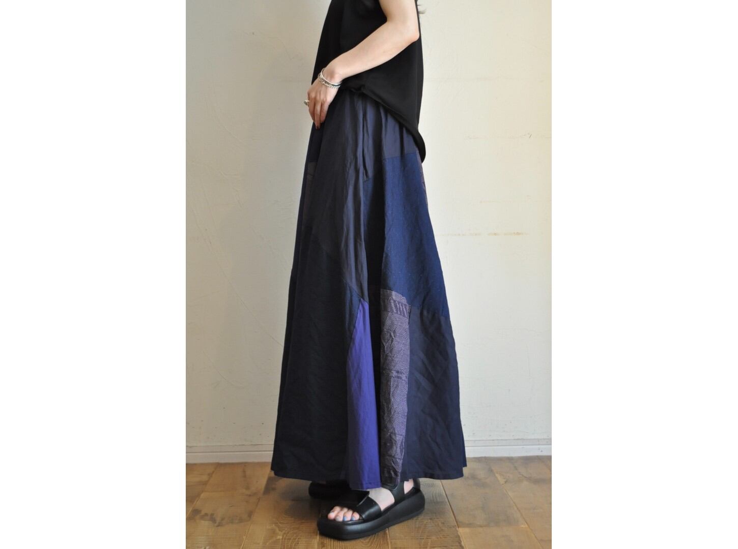 ●素材の異なる様々な生地を贅沢に使用し、パッチワークで仕上げたロングスカート。