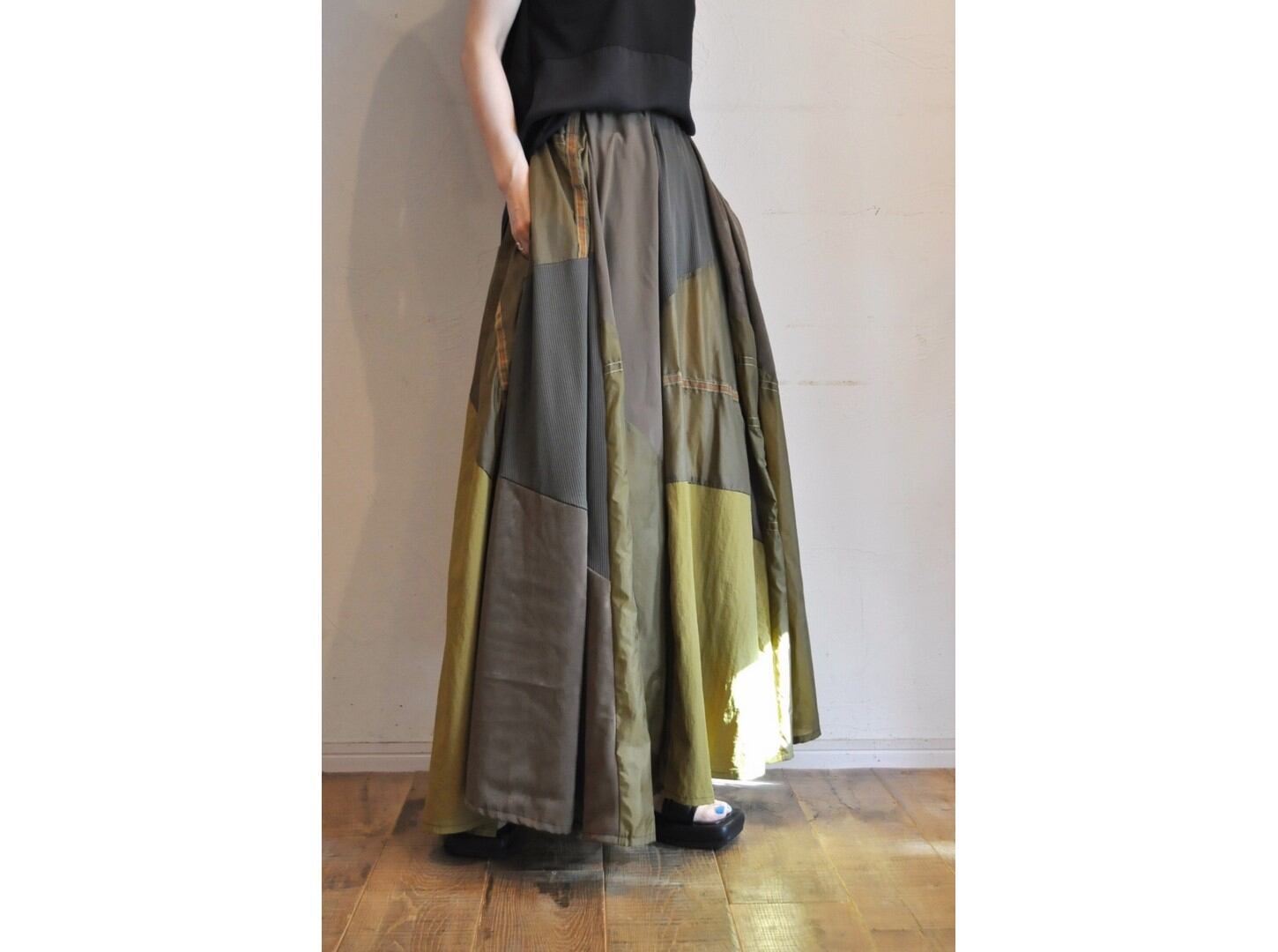 ●素材の異なる様々な生地を贅沢に使用し、パッチワークで仕上げたロングスカート。
