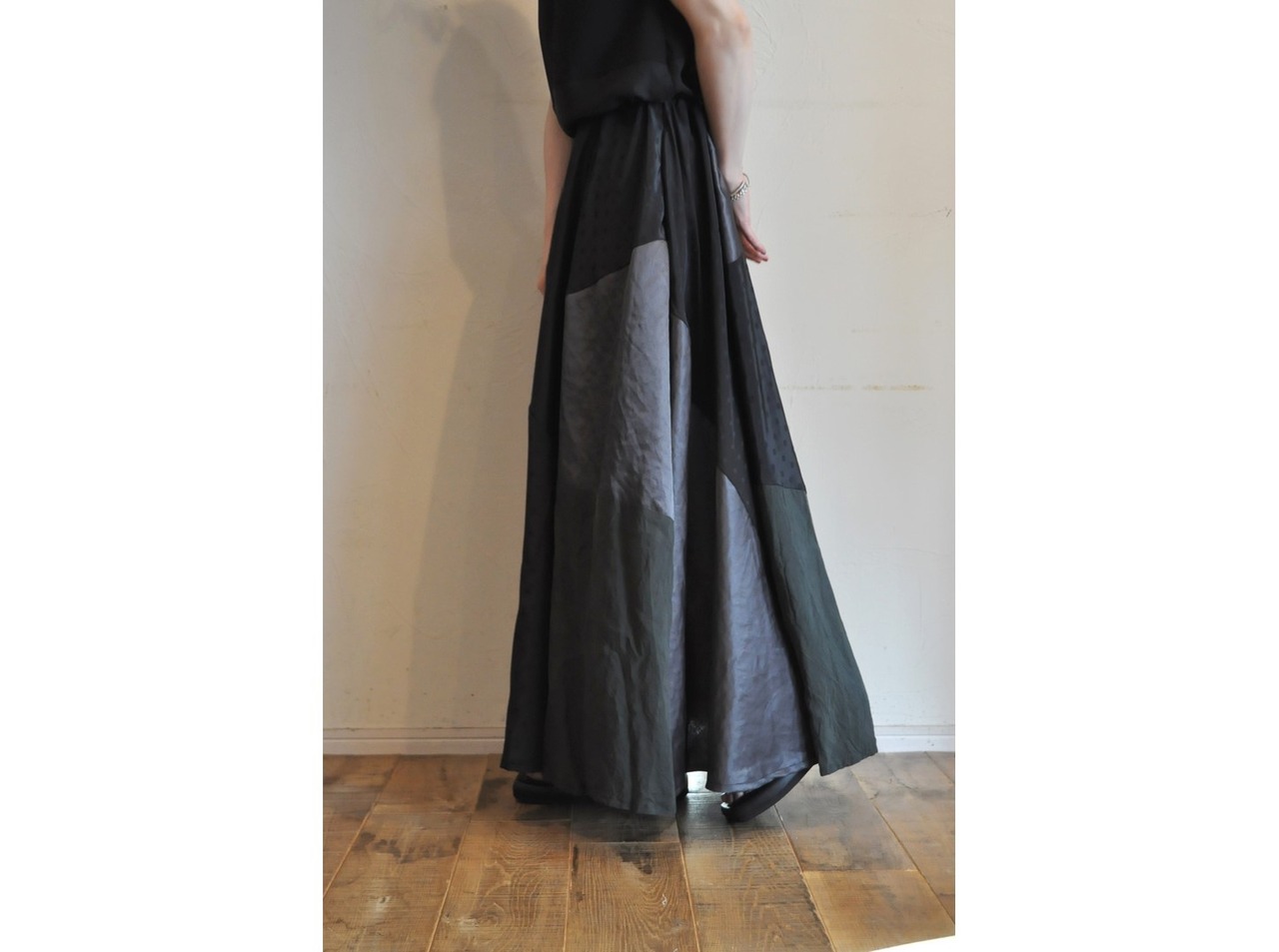 ●素材の異なる様々な生地を贅沢に使用し、パッチワークで仕上げたロングスカート。