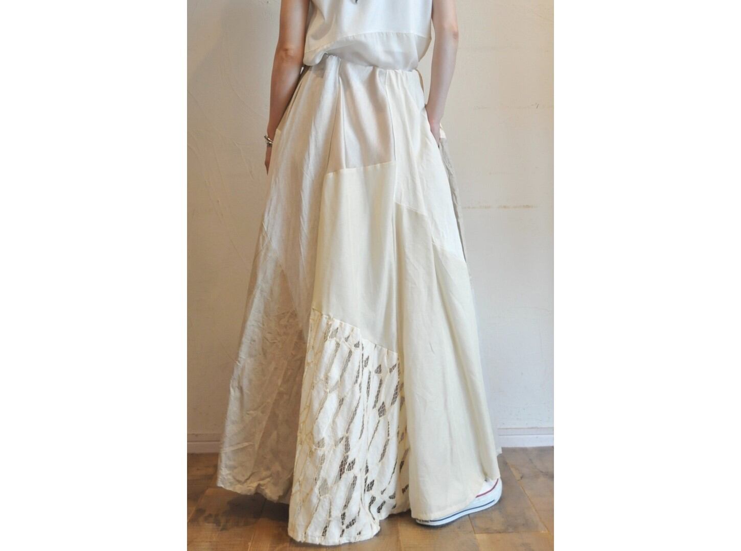 ●素材の異なる様々な生地を贅沢に使用し、パッチワークで仕上げたロングスカート。