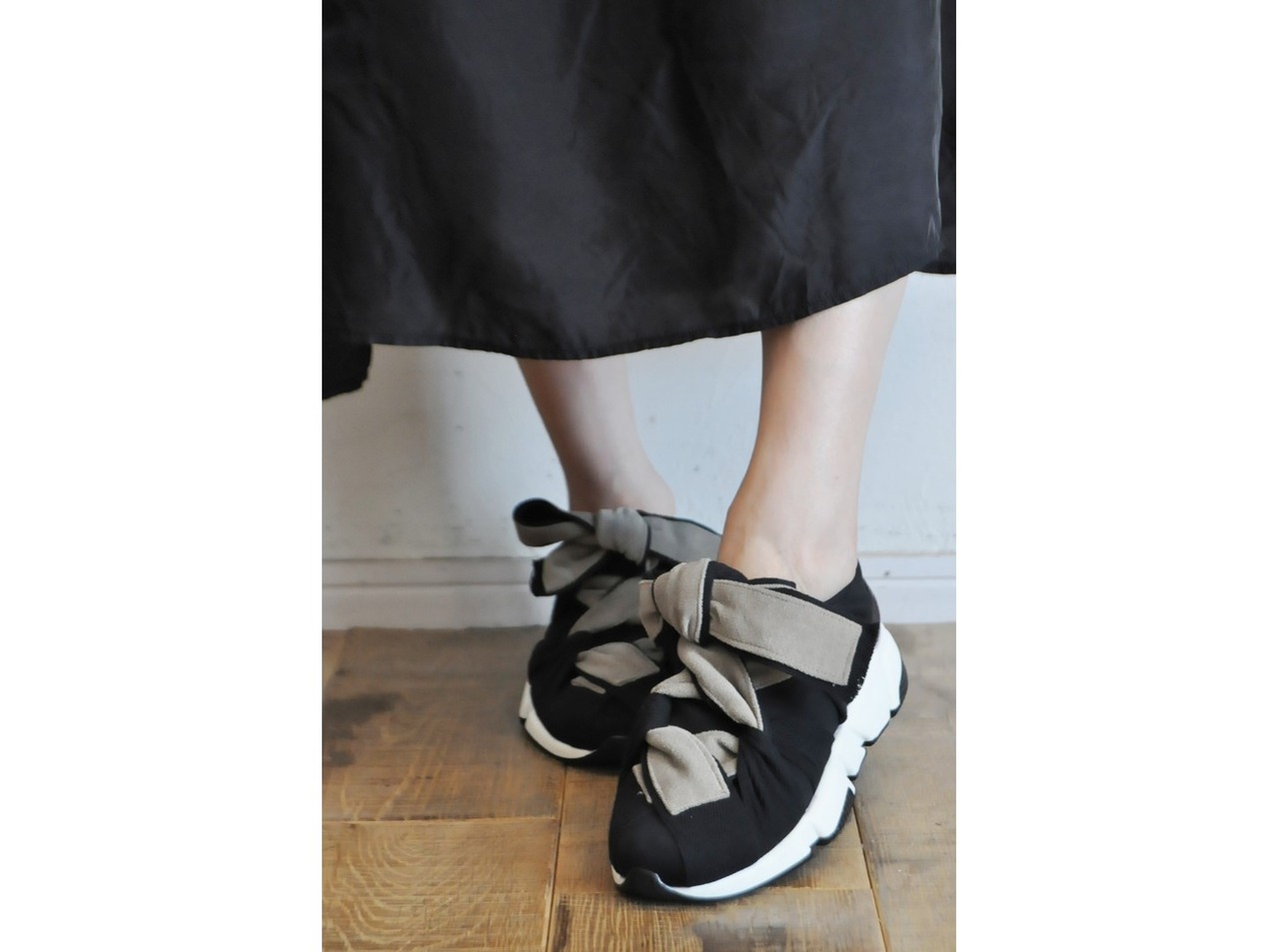 【RehersalL】cotton velour ribbon sneakers /【リハーズオール】コットンベロアリボンスニーカー