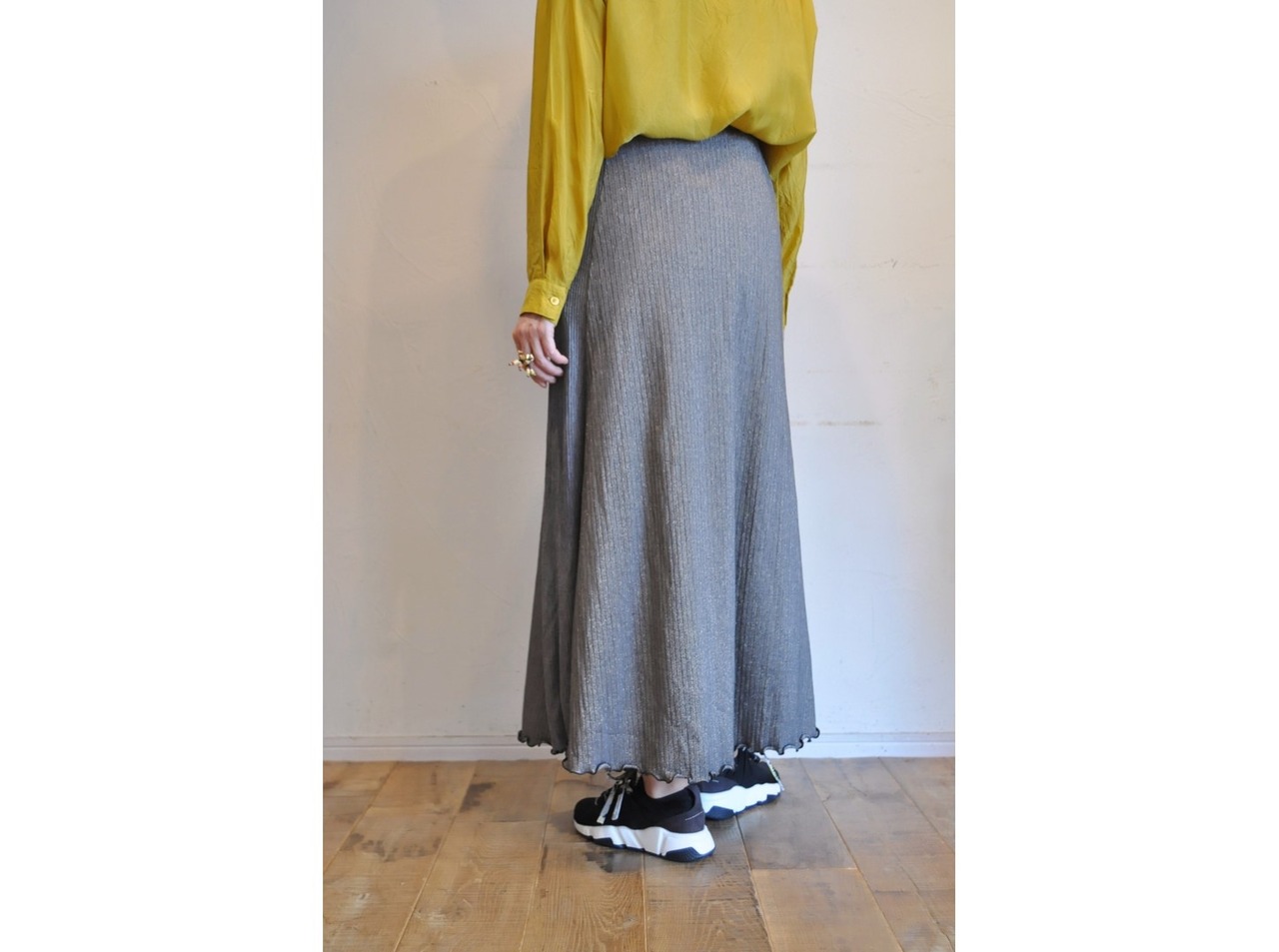 ●2種類のラメのリブ生地を組み合わせたロングスカート。