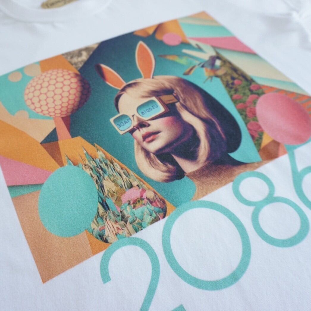 近未来的なグラフィックで私の思うユートピアが描かれているグラフィックにインパクトのあるTシャツ。