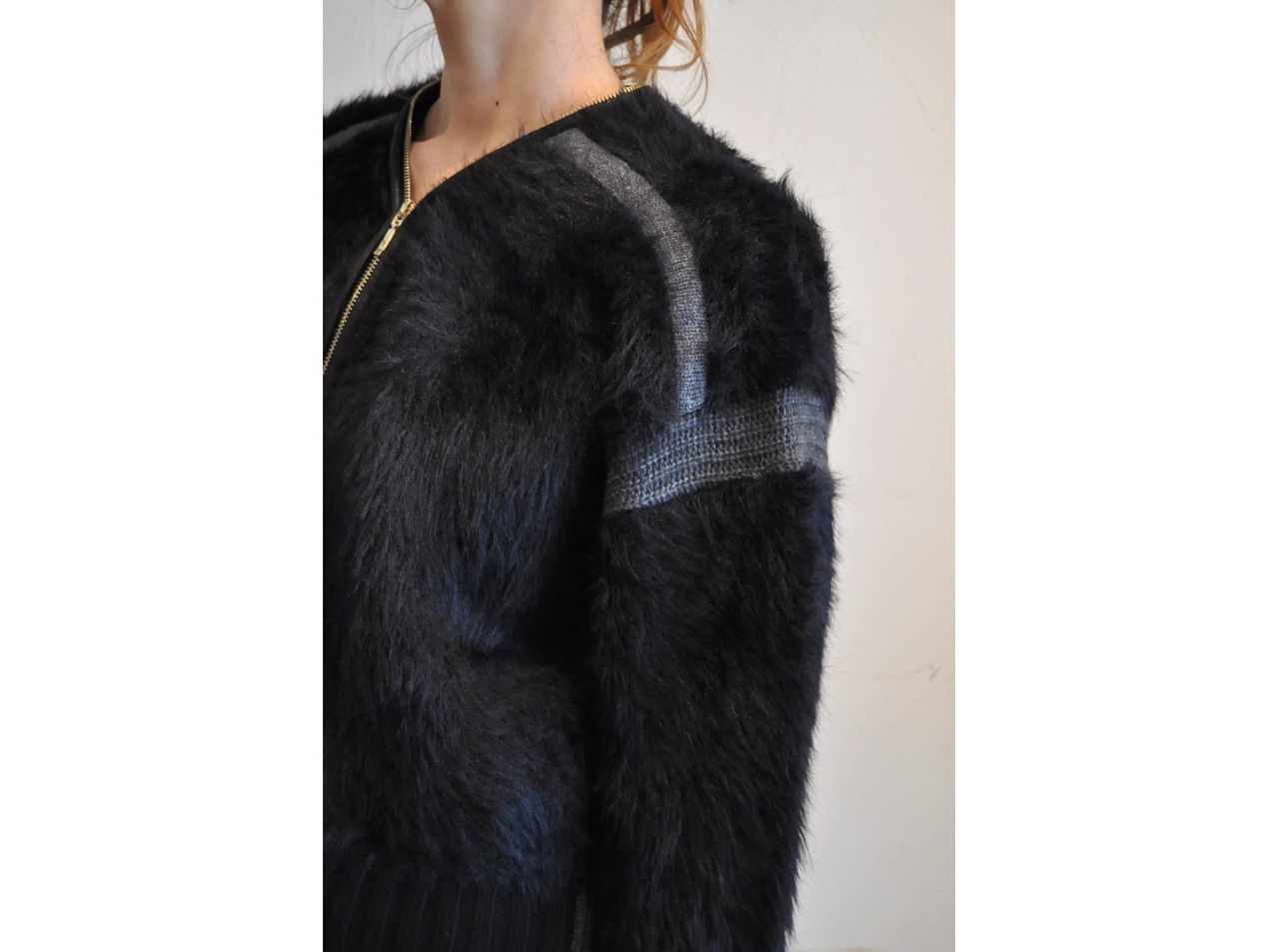 ●表面は毛足の長いシャギーヤーン、裏面はさらっとしたニットになったデザインのブルゾン。