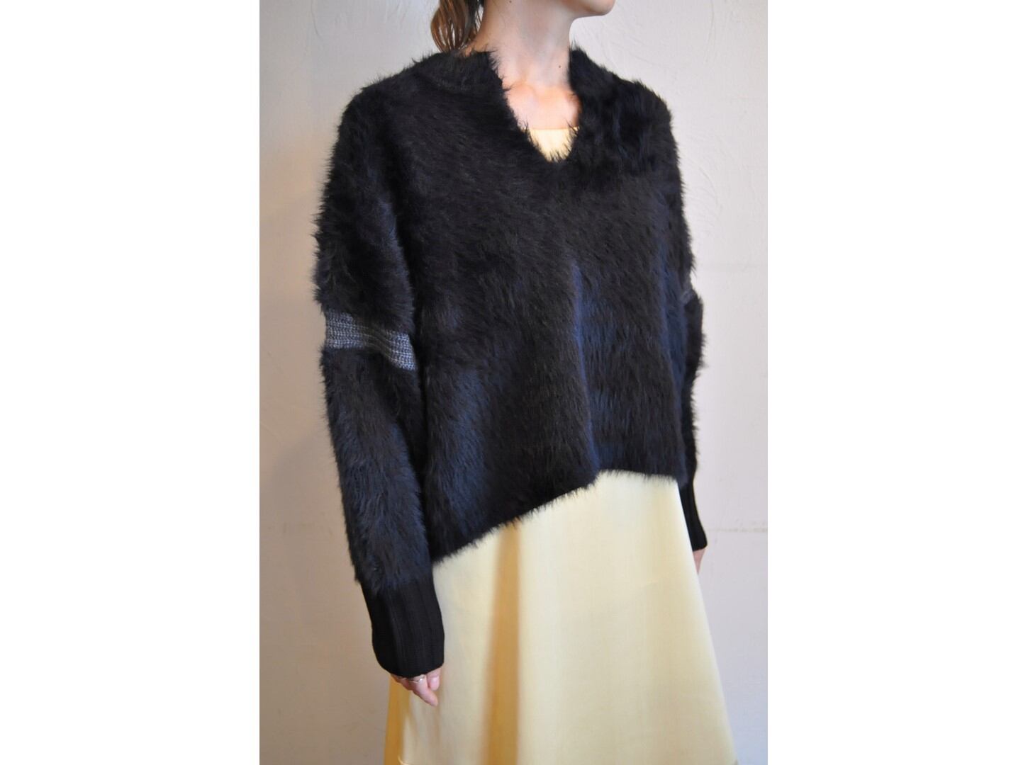 ●表面は毛足の長いシャギーヤーン、裏面はさらっとしたニットになったデザインのプルオーバー。