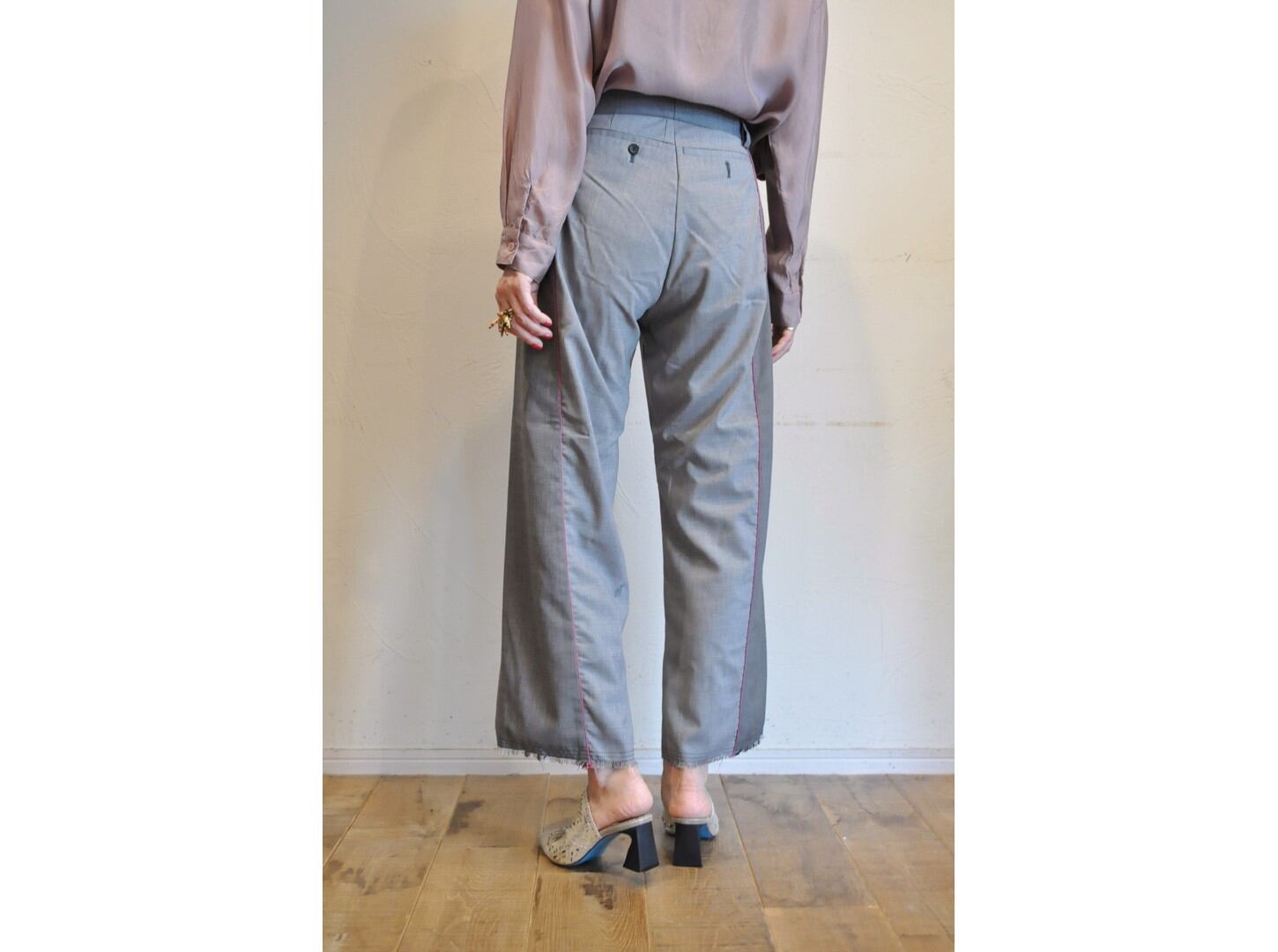 ●古着のスラックスパンツを2本使用しドッキングさせたリメイクパンツ。