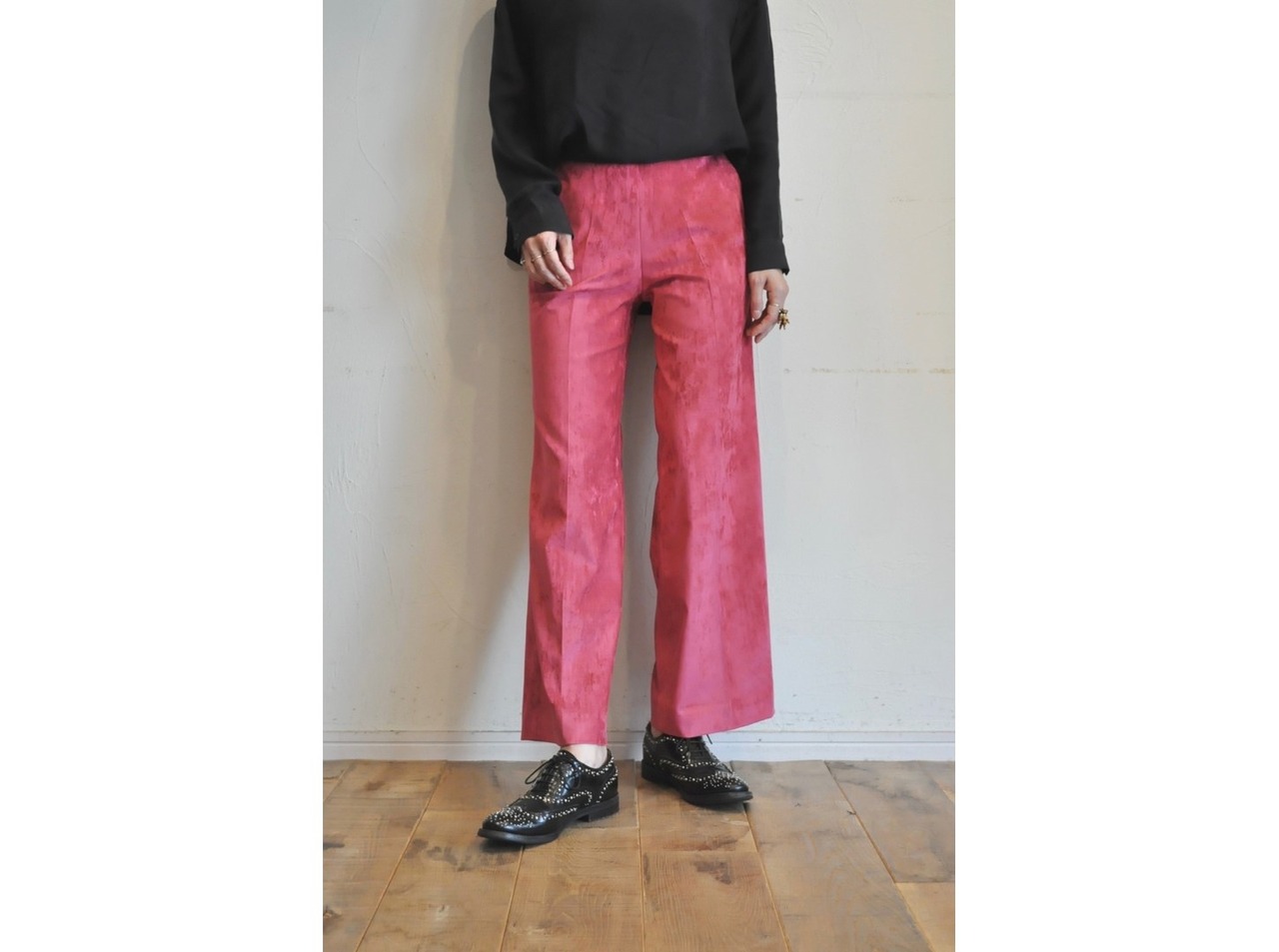 上品な風合いのベロア素材を使用したソフトタッチで程よい肉感のワイドパンツ。