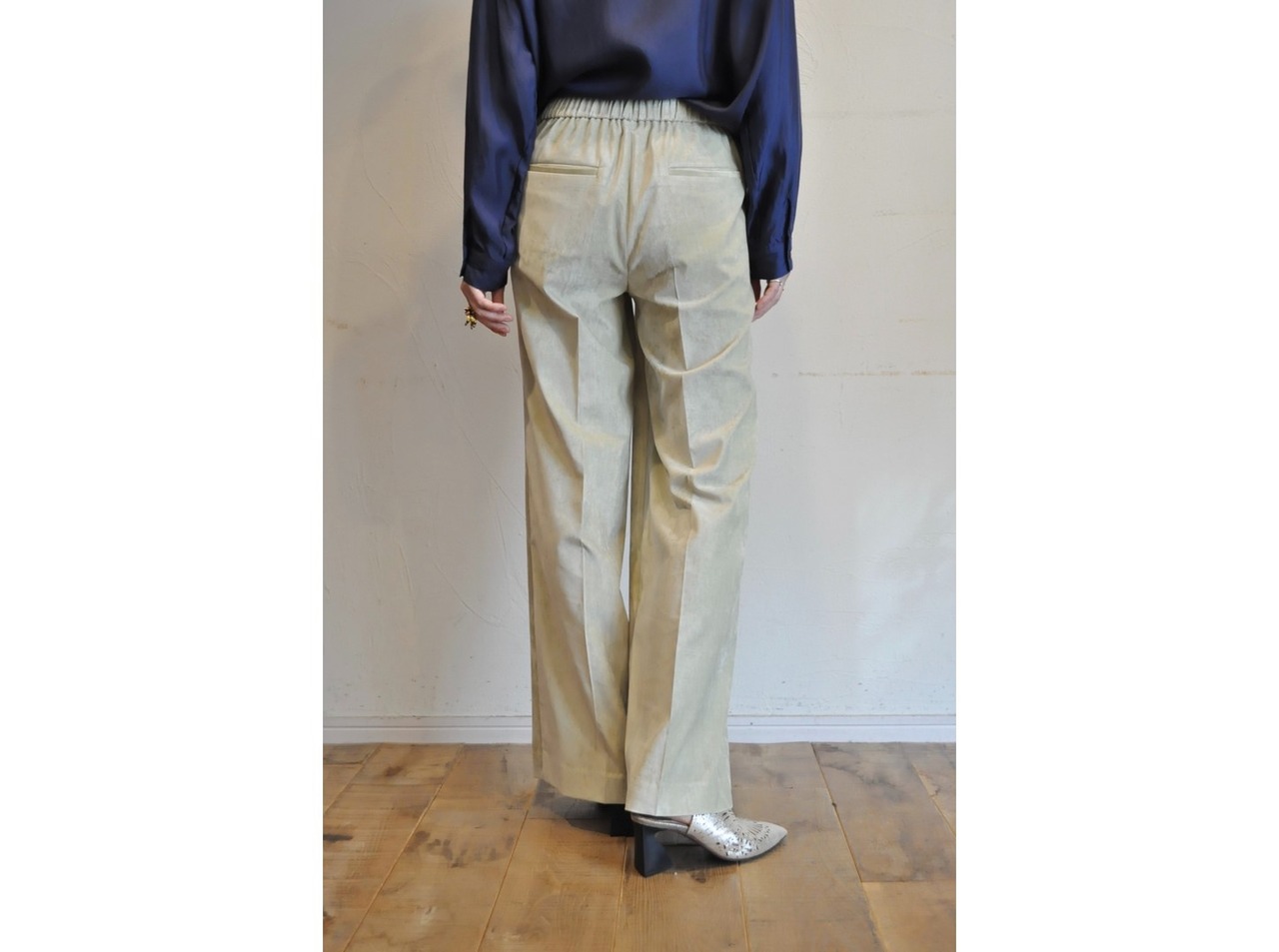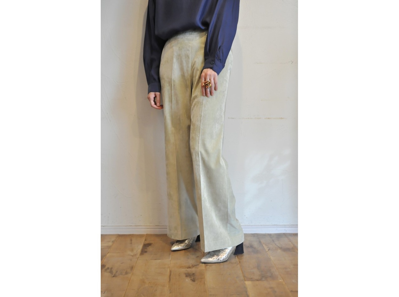 上品な風合いのベロア素材を使用したソフトタッチで程よい肉感のワイドパンツ。
