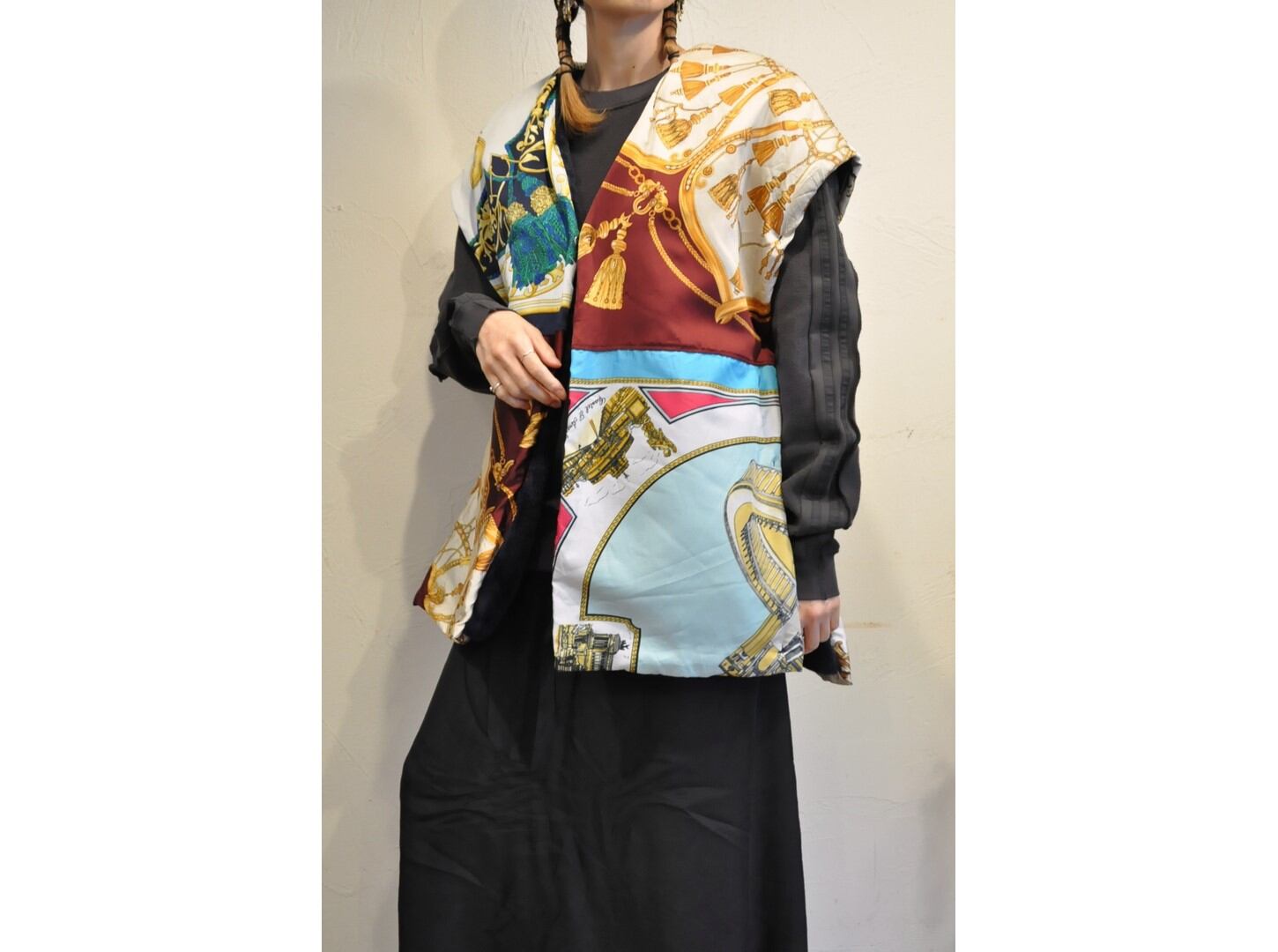 裏地はスカーフのパッチワーク仕様で、リバーシブルで着て頂けます。