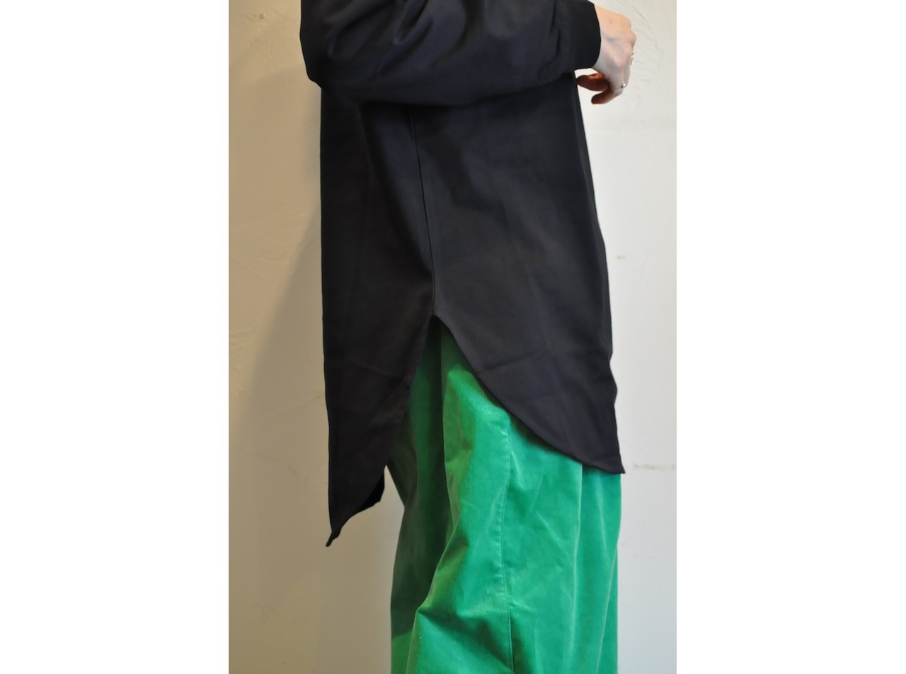 衿元のあき加減と長めの丈感が絶妙なバランス。