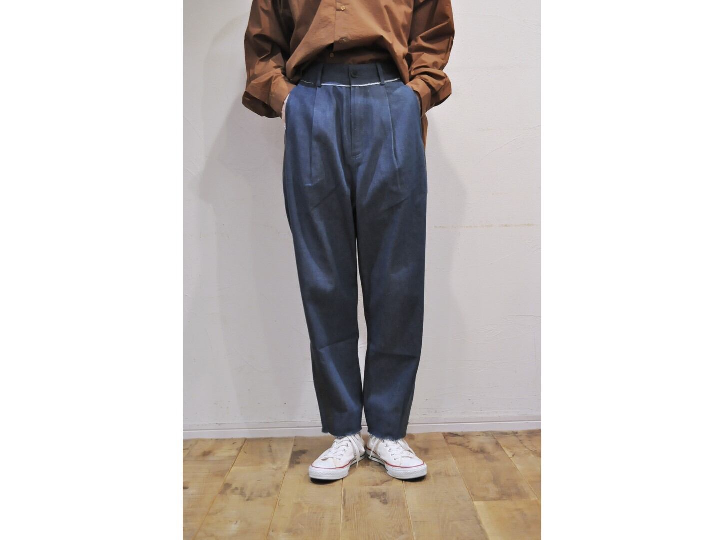 テーパードシルエットで膝にかけて立体的なパターンになてています。
