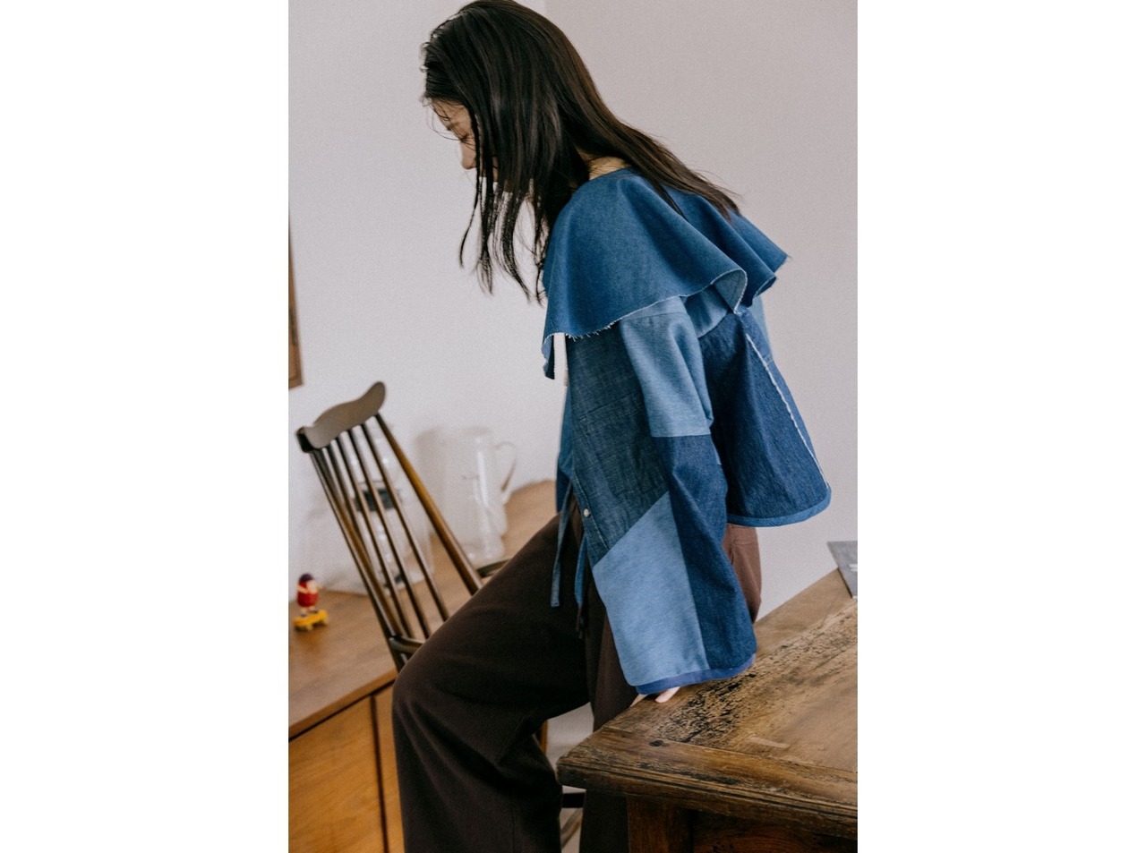 古着のダンガリーシャツをリメイクし、ボレロに仕立てた一点物のアイテム。