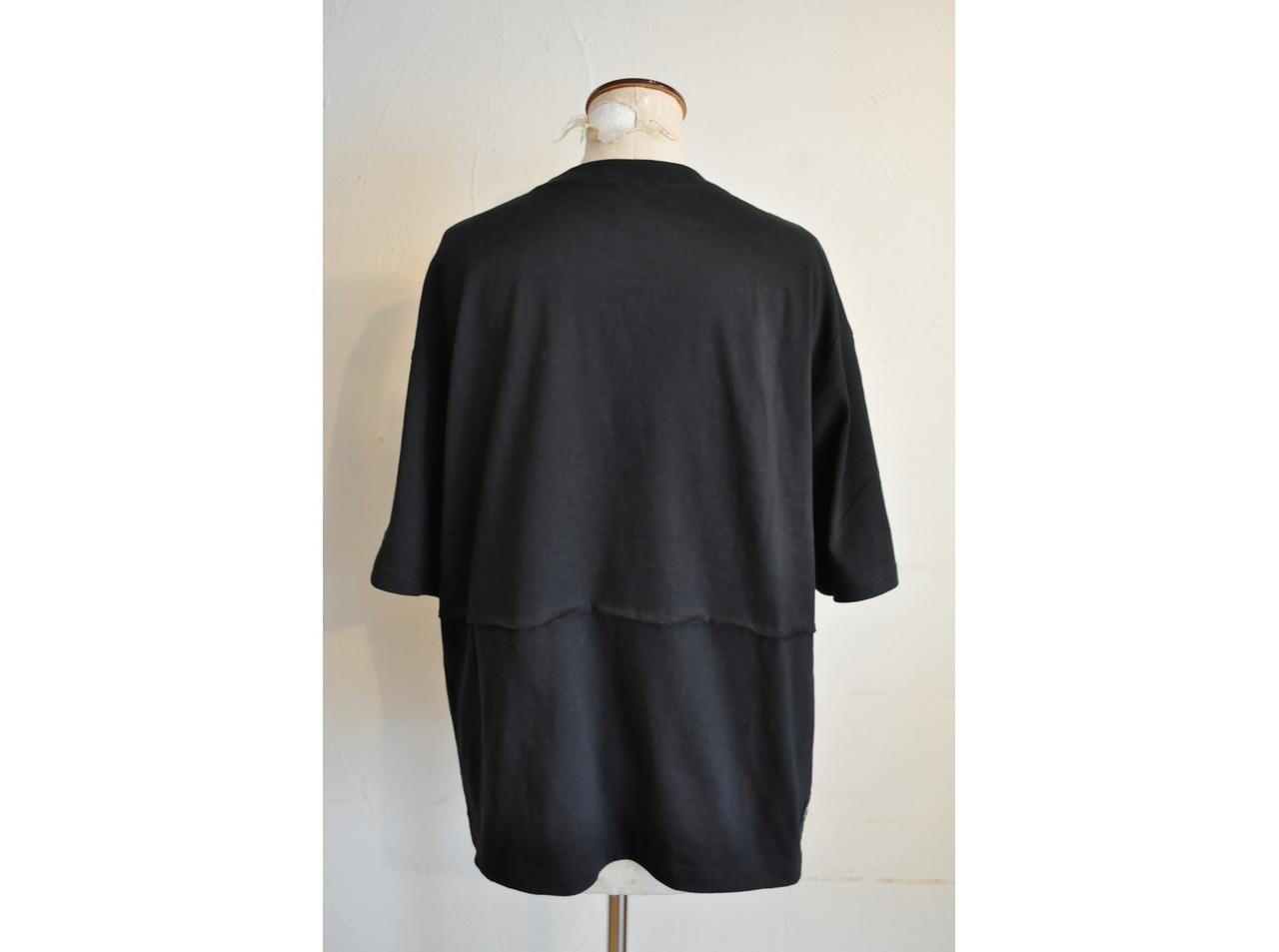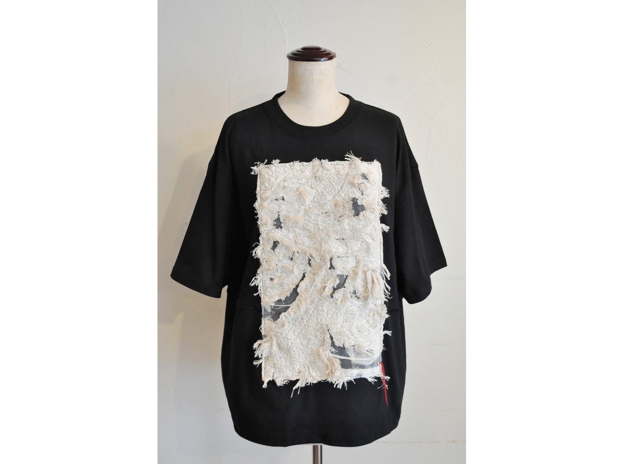 ●ビッグシルエットのTシャツをベースに、オーガンジージャガード生地を縫い当てた、シンプルながらインパクトのある一着。