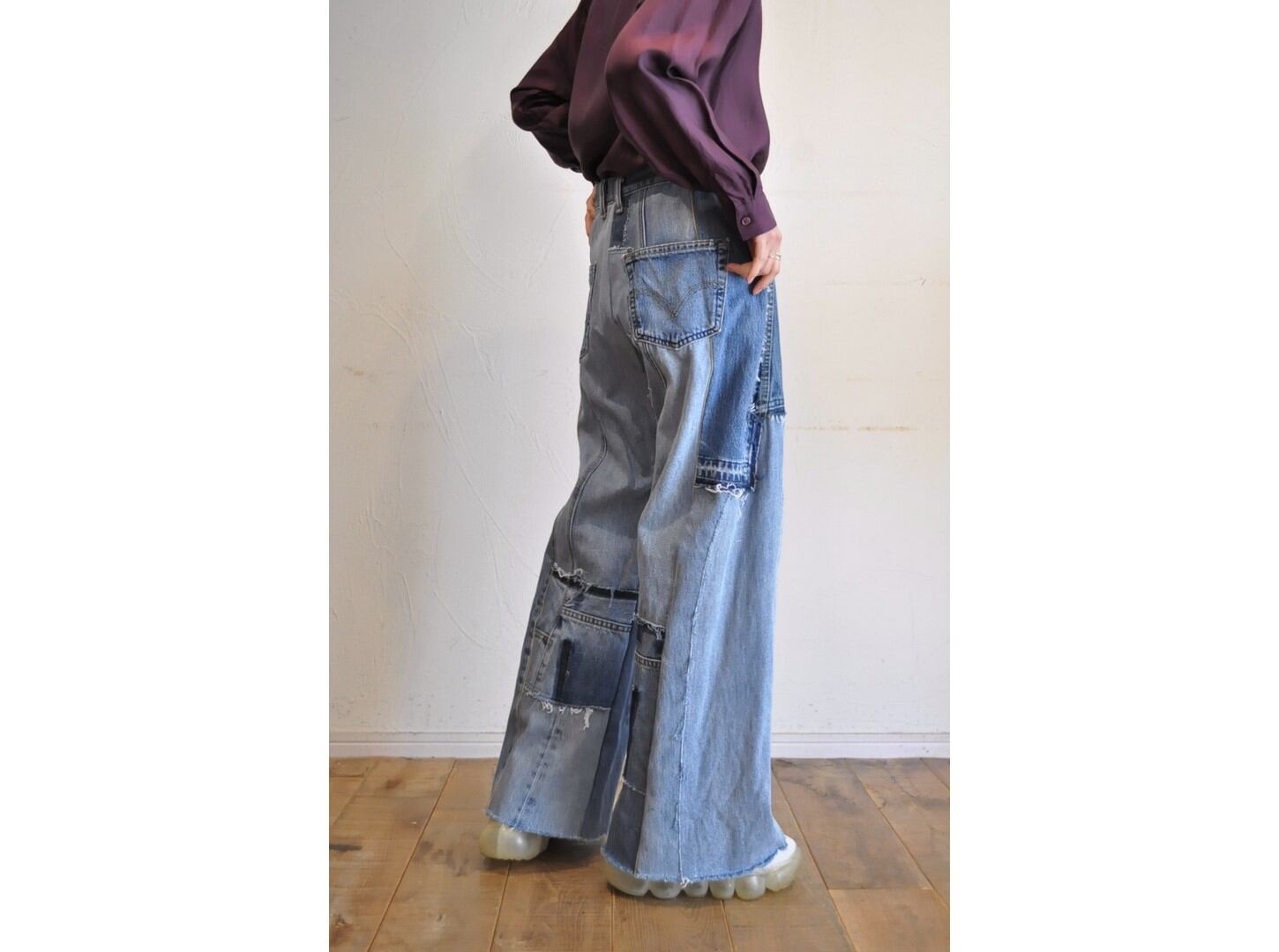 ●ユーズドのリーバイスのデニムを使用しパッチワークで仕上げたリメイクデニム。