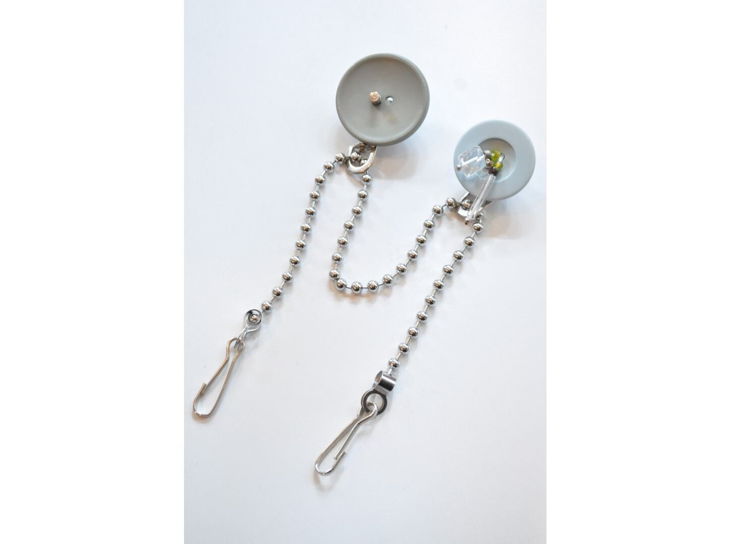 太めのボールチェーンとヴィンテージボタンを使用したインパクトのあるアクセサリー。