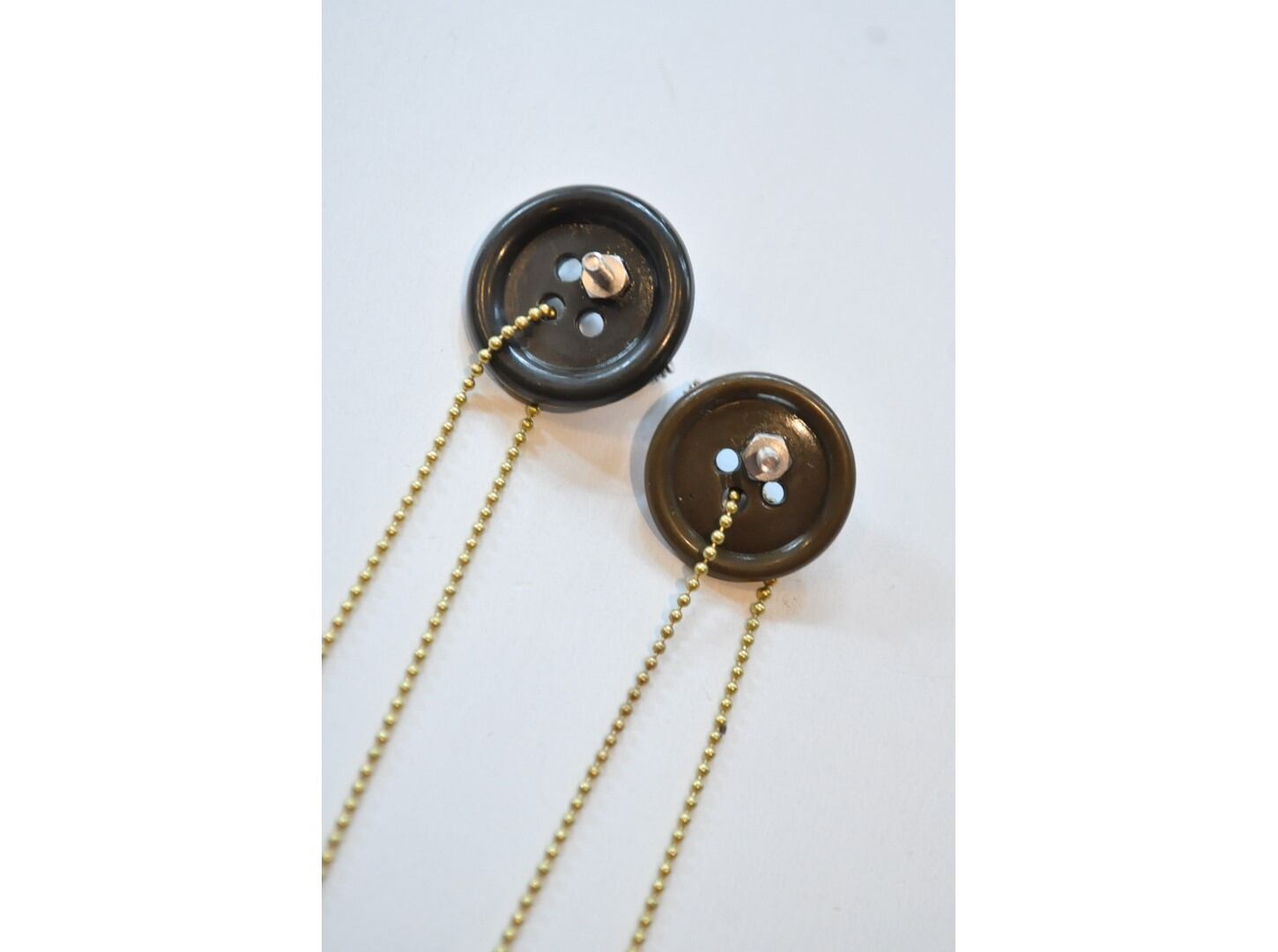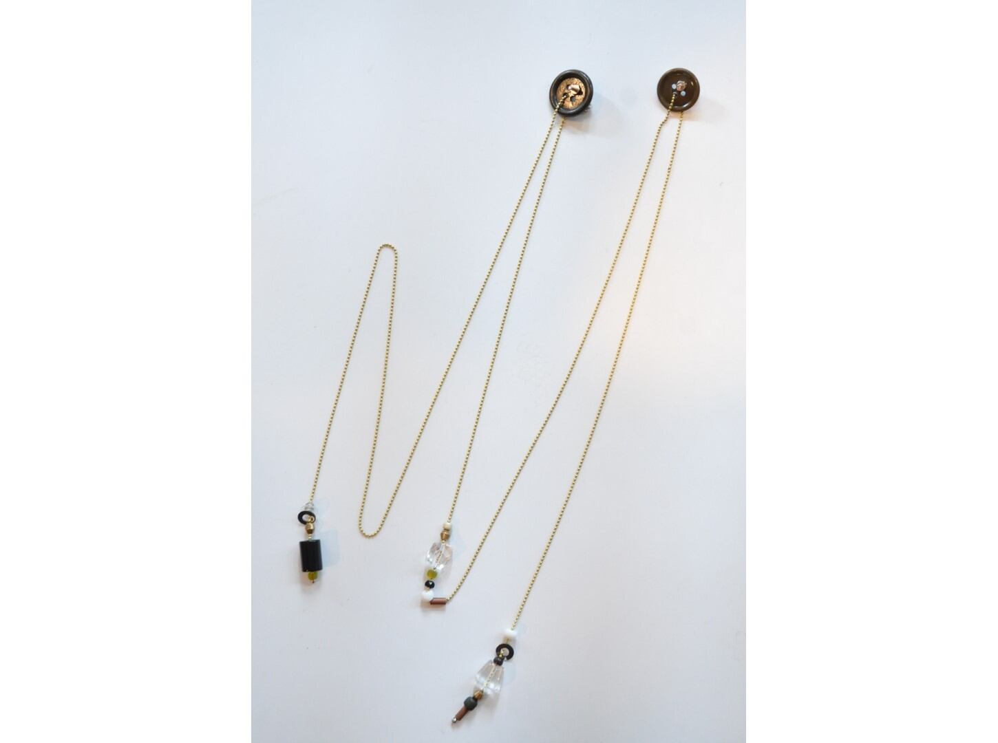 細めのボールチェーンとヴィンテージボタンを使用した、繊細な雰囲気のあるアクセサリー。